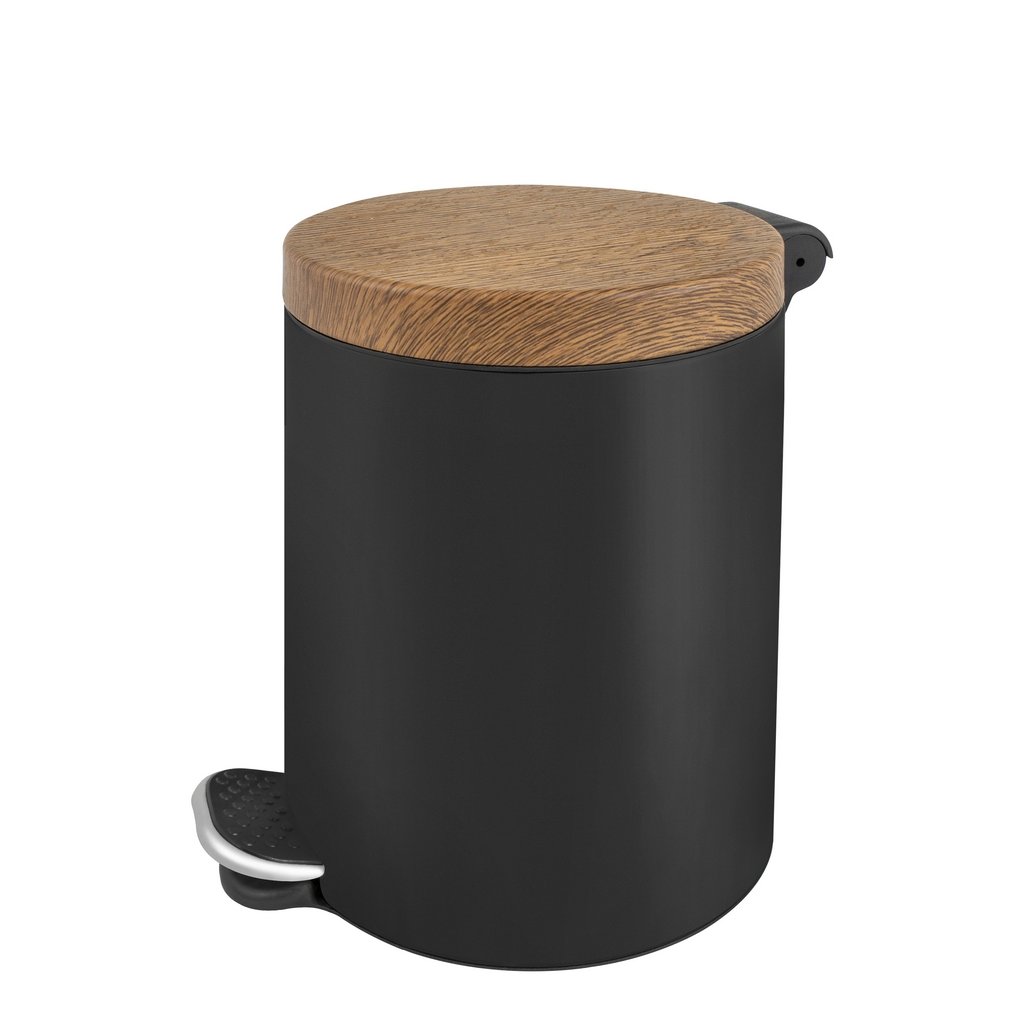Funkční odpadkový koš do koupelny o objemu 3 litry. Je vyroben z oceli s organickým povlakem a následně opatřen práškovou barvou pro zvýšení odolnosti a antikorozních vlastností. Díky vysoce kvalitním materiálům použitým při výrobě má odpadkový koš dokonale hladký povrch, je odolný a má zvýšenou odolnost proti poškození. Víko koupelnového odpadkového koše zabraňuje vypadávání odpadu a úniku nepříjemných pachů. Otevírá se hygienickým způsobem bez použití rukou a bez nutnosti ohýbat se pomocí funkčního pedálu, který je navíc pokrytý speciální protiskluzovou vrstvou, což zvyšuje jeho komfort. Kromě toho je koš vybaven inovativním mechanismem "CLICK LOCK", který při otevření uzamkne víko ve svislé poloze. Jednoduše odklopte víko a stiskněte tlačítko Stop. To umožňuje pohodlné vyprazdňování obsahu koše. Koš na odpadky v koupelně má navíc vnitřní nádobu z lehkého plastu a je vybaven praktickými úchyty, které usnadňují výměnu plastových sáčků a udržování koše v čistotě. Odpadkový koš je vybaven robustním závěsem s deklarací pevnosti 10 000 cyklů. Je navržen tak, aby navíc sloužil jako pohodlné držadlo, pomocí kterého lze koš snadno zvednout a přenést na libovolné místo. Kromě mnoha praktických funkcí je jeho nespornou výhodou atraktivní design. Barevná kombinace černé a dřeva je ideální pro koupelny v ekologickém nebo loftovém stylu, ale díky svému univerzálnímu charakteru ji lze s úspěchem použít i v jiných úpravách. Odpadkové koše jsou ideální pro domácí koupelny, hotelové koupelny a veřejné toalety. Hodí se také do kuchyně, kanceláře, pracovny nebo pokoje teenagera. Jsou k dispozici v objemech 3 l a 5 l v různých barevných variantách. Klíčové vlastnosti odpadkového koše: - Objem 3 litry - atraktivní design - uzamykatelné víko - vnitřní koš s úchyty - madlo pro snadné přenášení - systém "CLICK LOCK" pro uzamčení víka - protiskluzový pedál pro otevírání nohou - vyrobeno z vysoce kvalitní ekologicky lakované oceli .