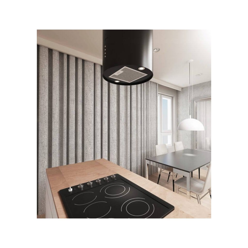 - Úspora prostoru: Ostrůvkový odsavač par je ideální pro kuchyně, kde je třeba zajistit efektivní odsávání bez narušení vzhledu otevřeného prostoru. Navíc, díky své konstrukci, nemusí být připojený ke zdi, což dává větší flexibilitu v designu kuchyně.