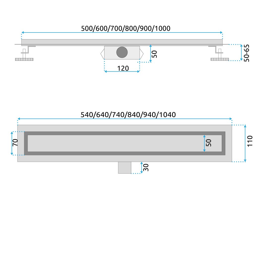 Sada obsahuje: žlab, kryt, nožičky, sifon, manžetu Dry-Fix, košík, manuál, háček na výměnu masky.