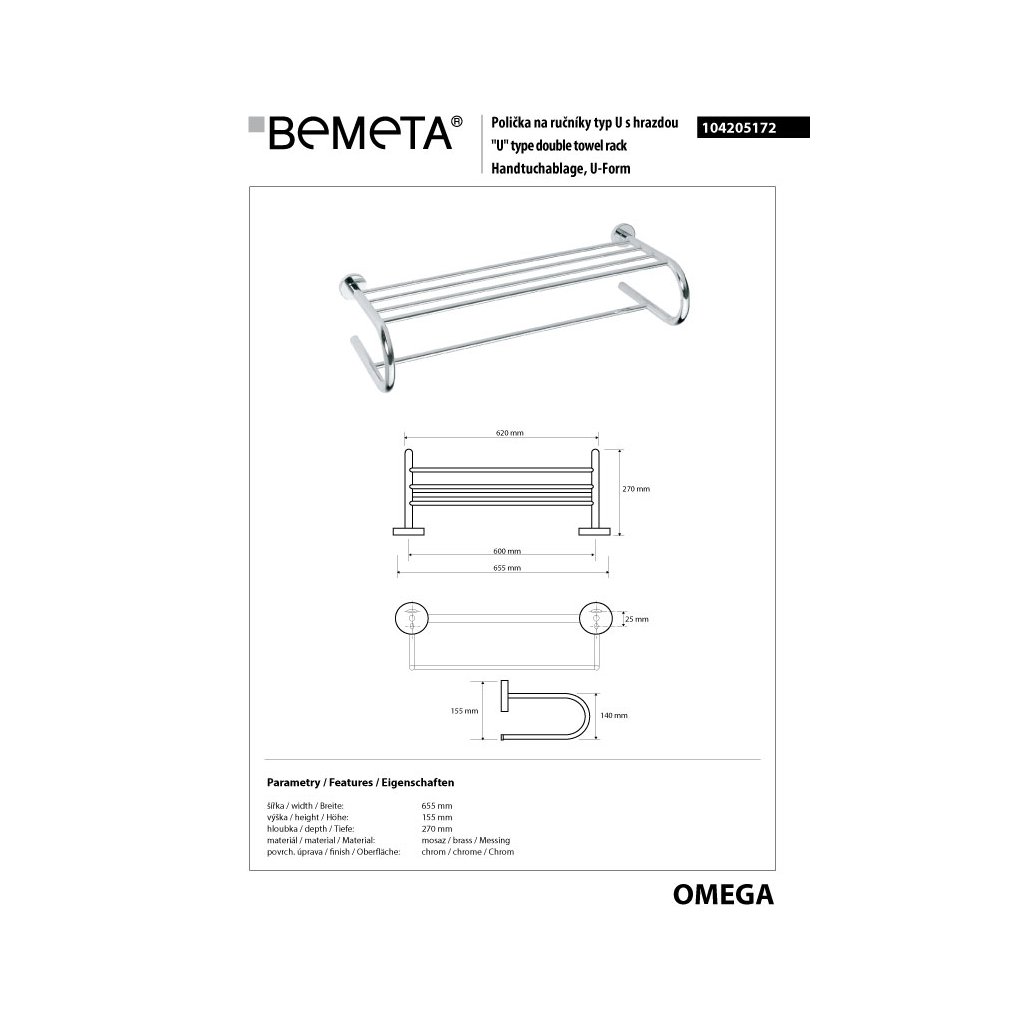OMEGA: Držák ručníků s hrazdou 600 mm - 104205172