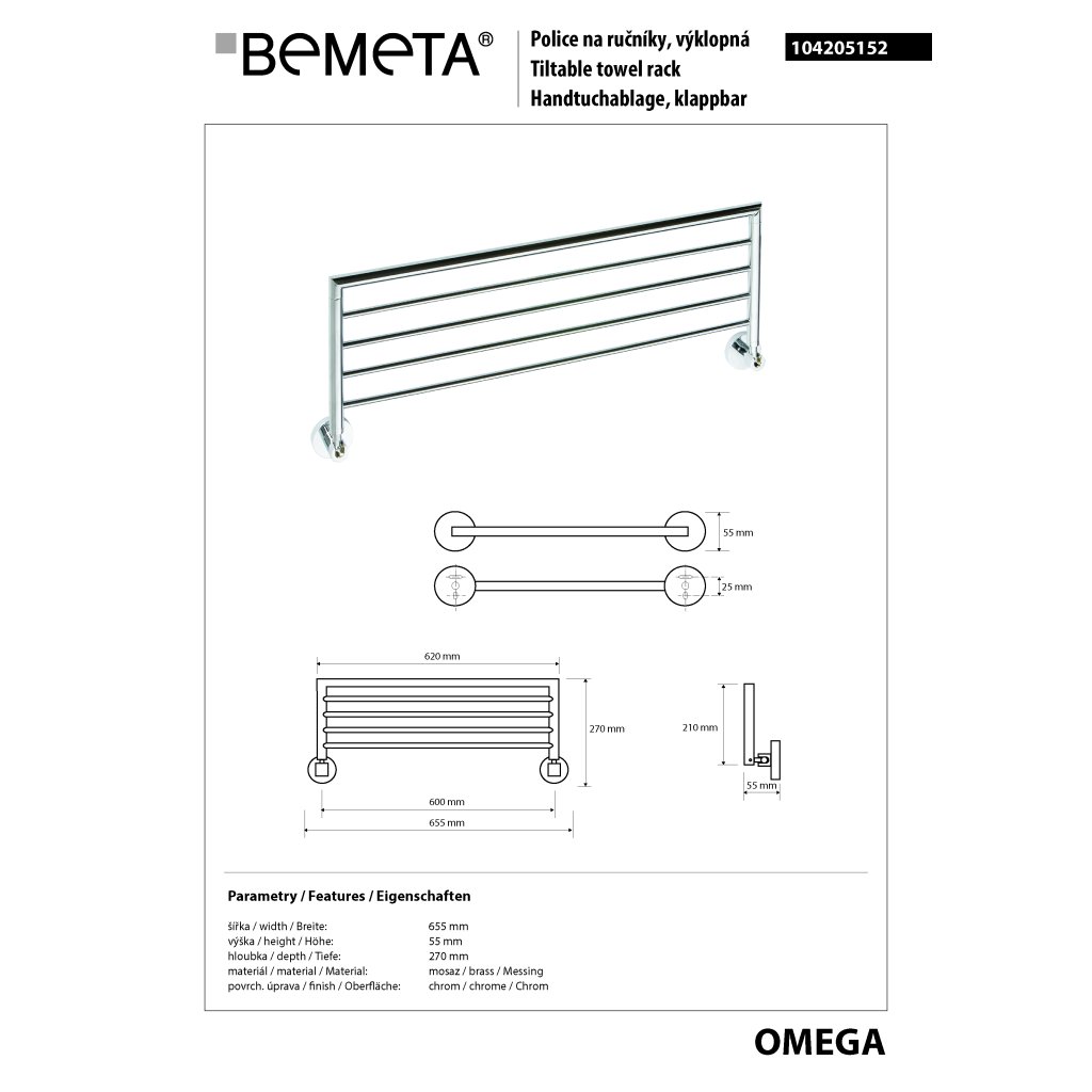 OMEGA: Držák ručníků výklopný 600 mm - 104205152