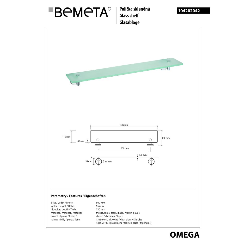 OMEGA: Polička skleněná, 600 mm - 104202042