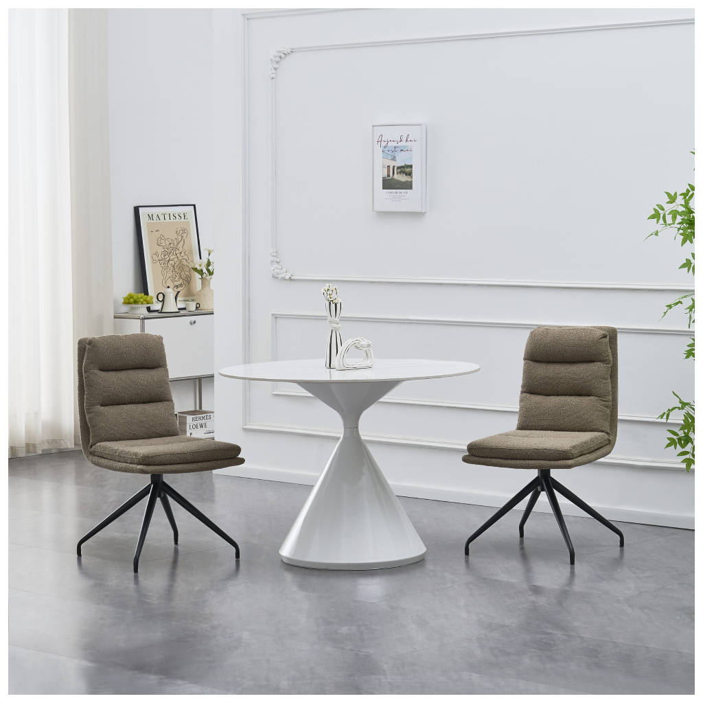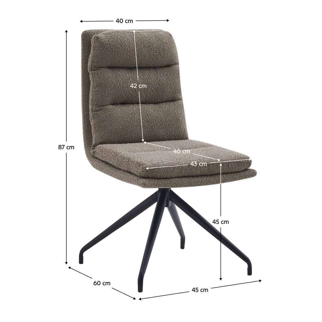 Elegantní otočná židle LINA v kombinaci béžové a černé barvy přináší do vašeho interiéru špičkový design a maximální pohodlí. Její čalounění z moderní látky Bouclé je nejen příjemné na dotek, ale díky vysoké odolnosti proti oděru zaručuje dlouhou životnost i při každodenním používání. Stylové dekorativní prošití dodává židli unikátní charakter, který oživí každou jídelnu či pracovnu.