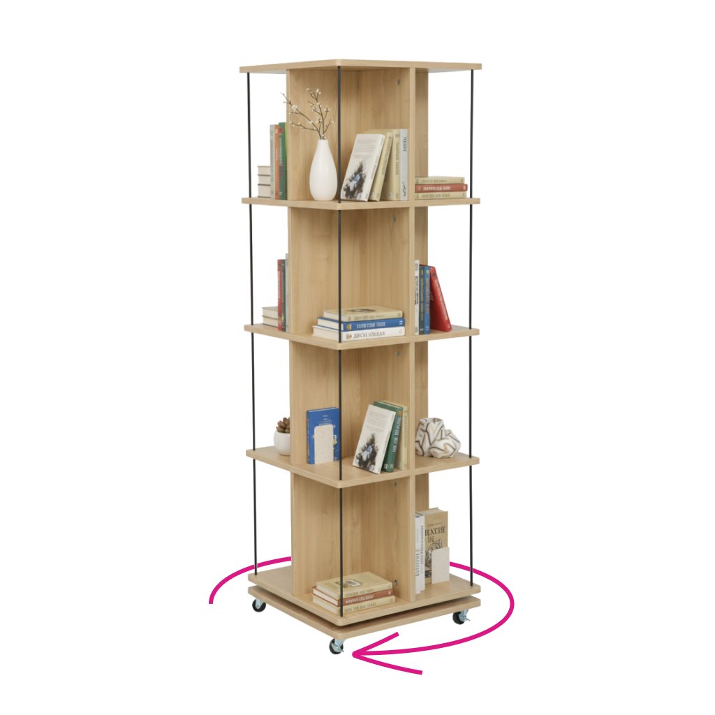 Otočný regál, dub/černá, POTOR