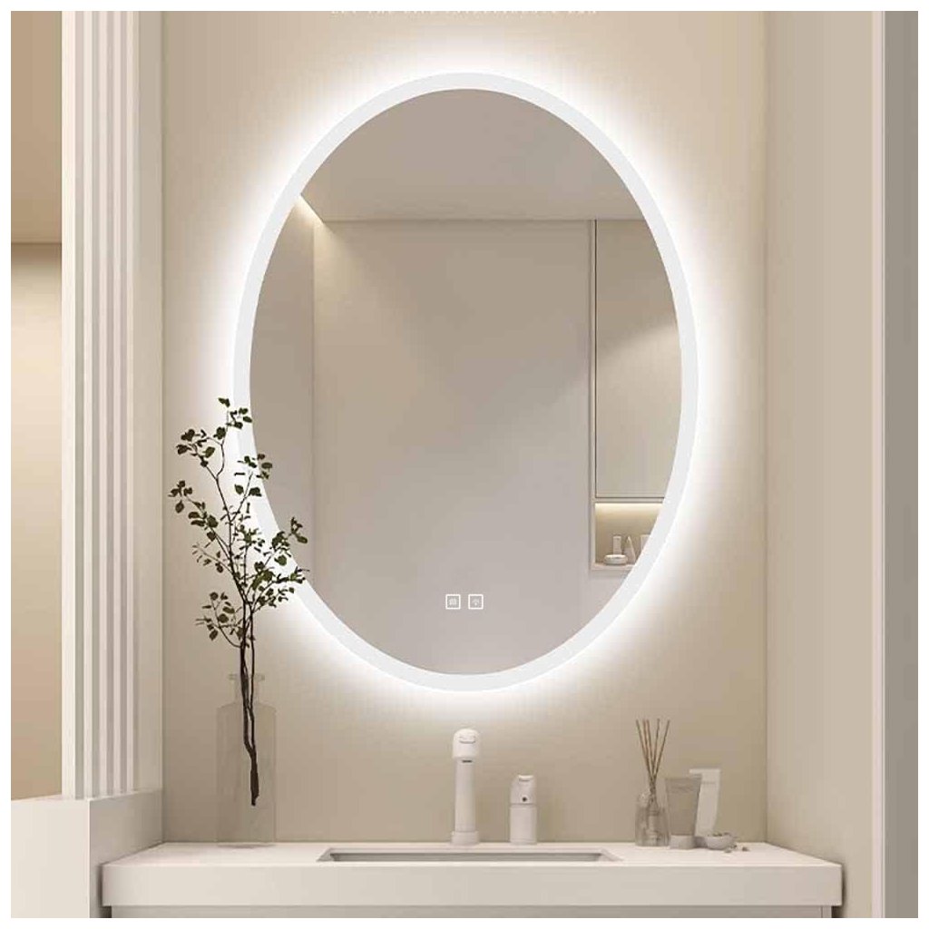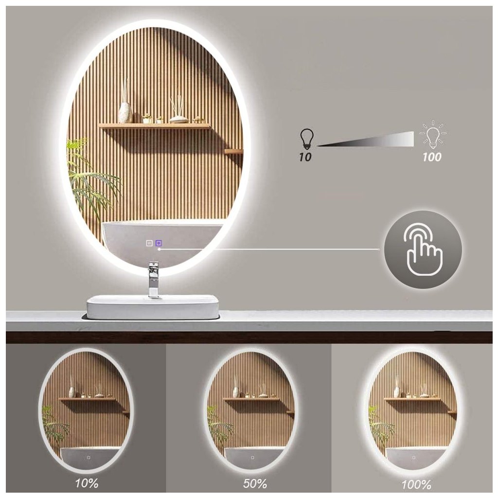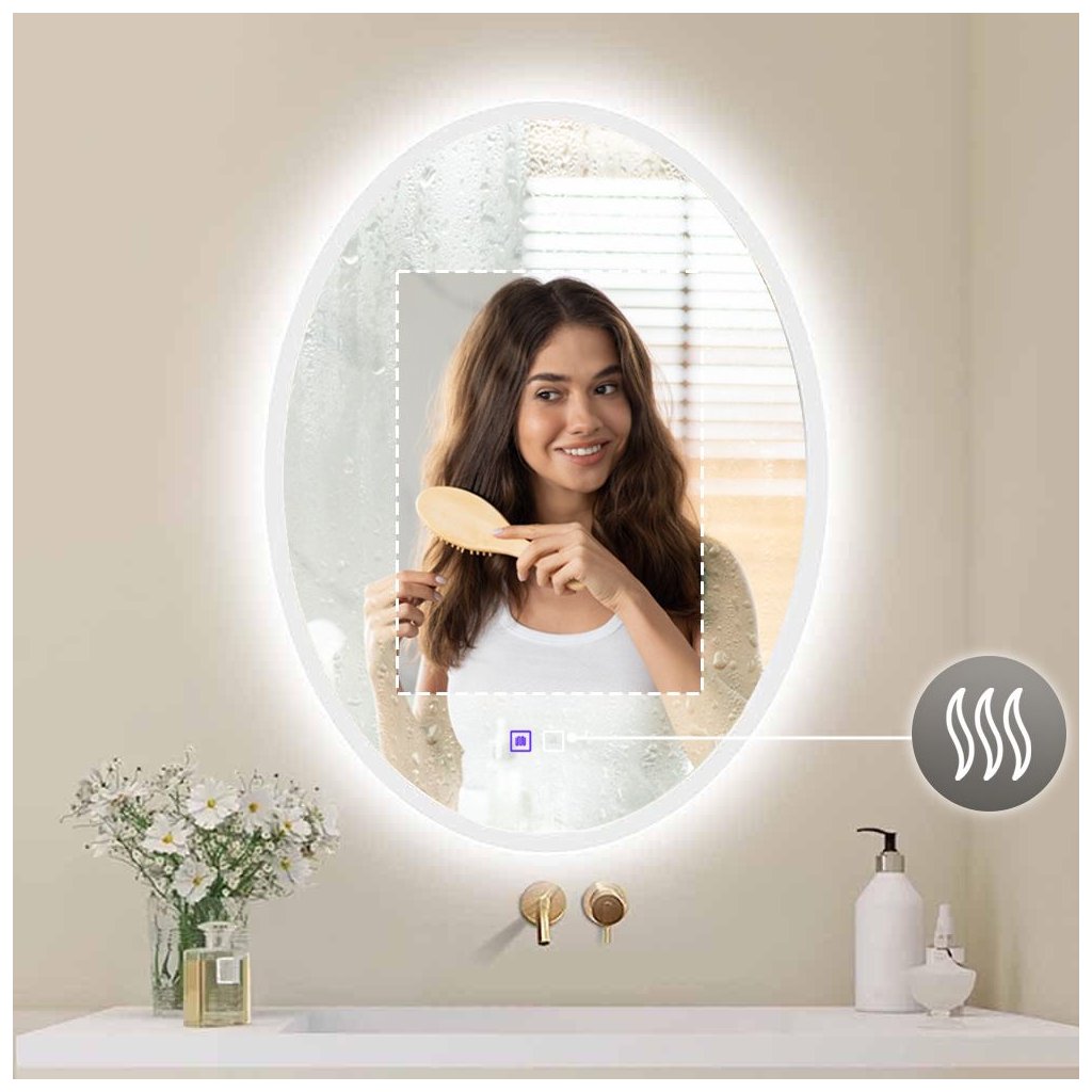 Oválné zrcadlo 60x80 cm s vyhříváním a regulovatelným LED osvětlením HOM-06503