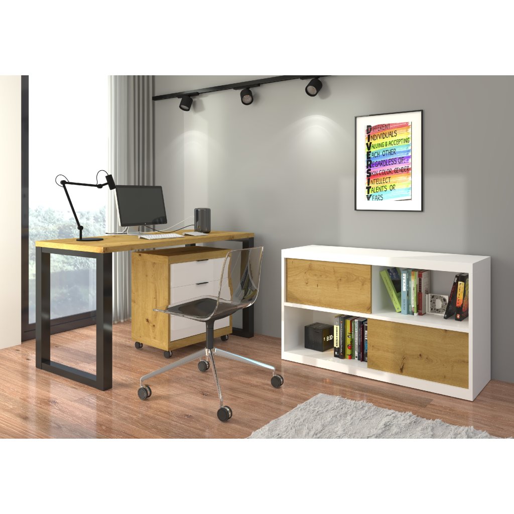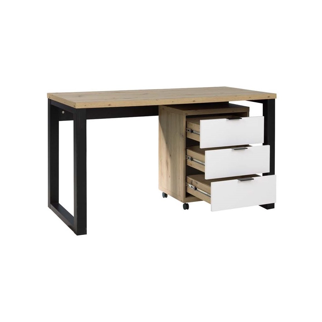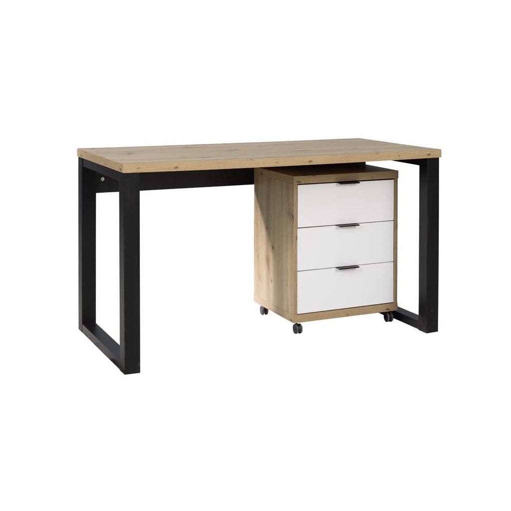 PC stůl s kontejnerem MARO I B-ART, dub artisan/bílá/černá
