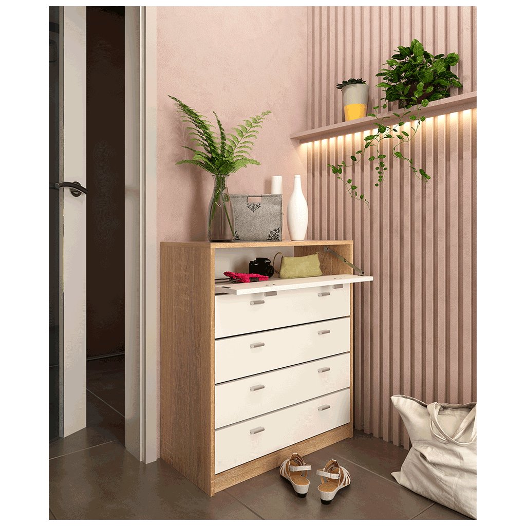 Pětiřadý botník, dub sonoma / bílá, VIVAT NEW TYP 4