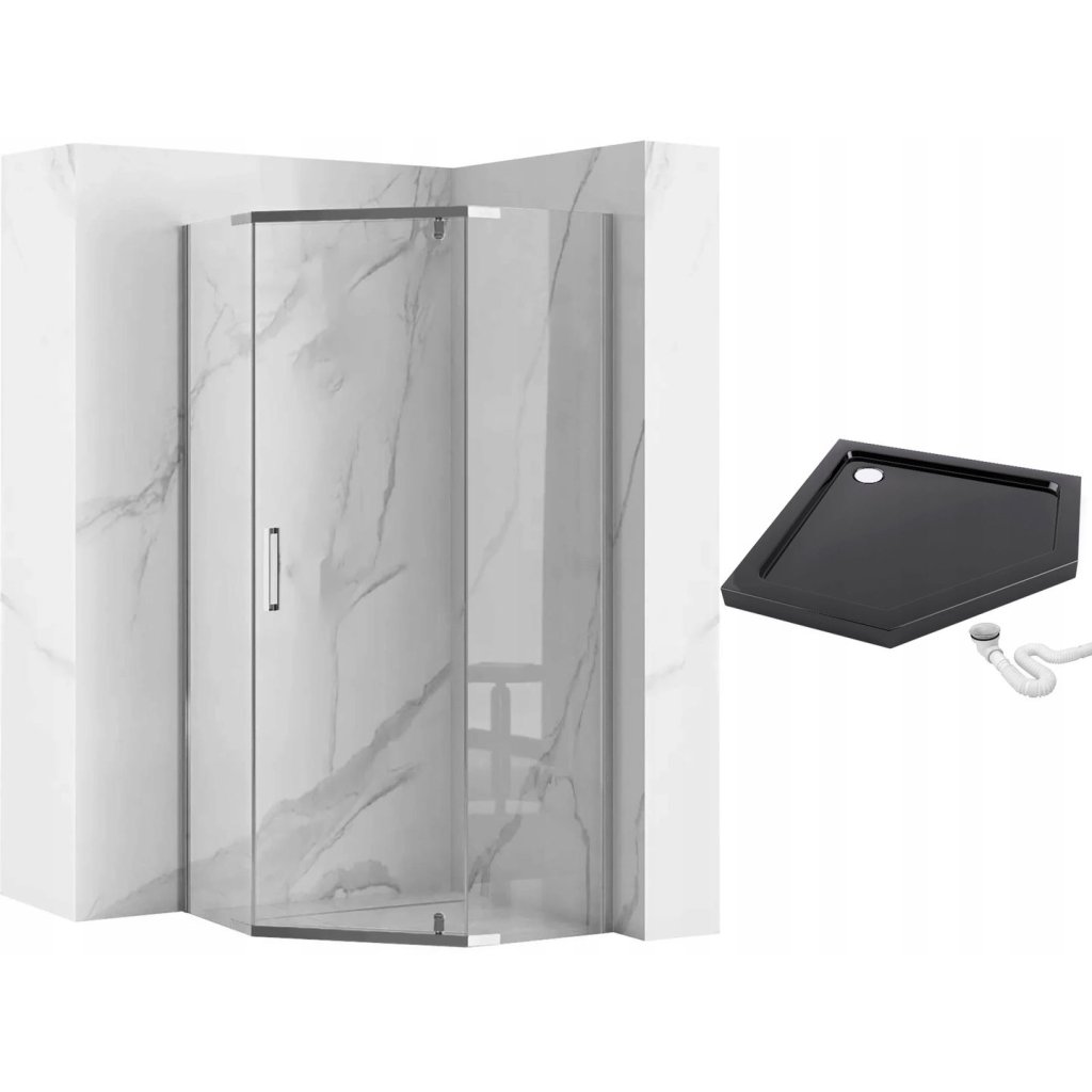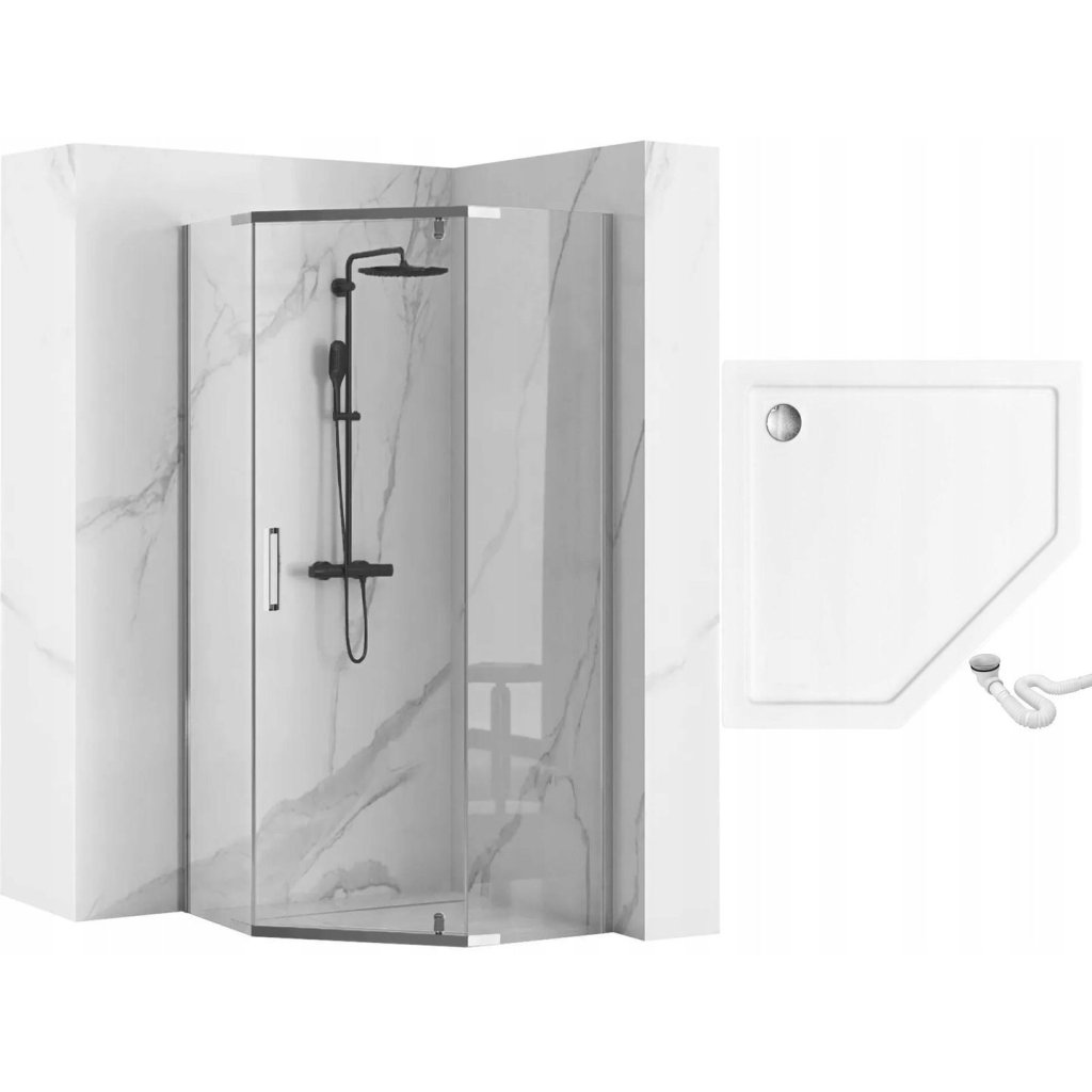 Pětiúhelníkový sprchový kout REA AXIN 90x90 cm, chrom/transparent + vanička Diamond bílá
