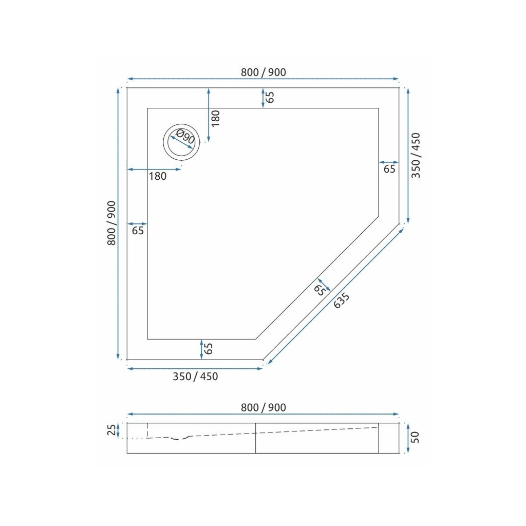 Upozornění: V případě objednávky pětiúhelníkového sprchového koutu a sprchové vaničky je nezbytné pečlivě zkontrolovat veškeré rozměry a tvar obou produktů.