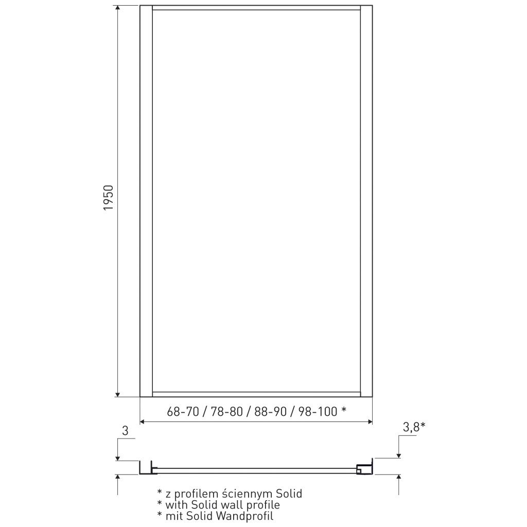 - Modulární systém: Prvek určený ke kompletaci se sprchovými dveřmi řady Solid DS, DDP, DSPA, DH.