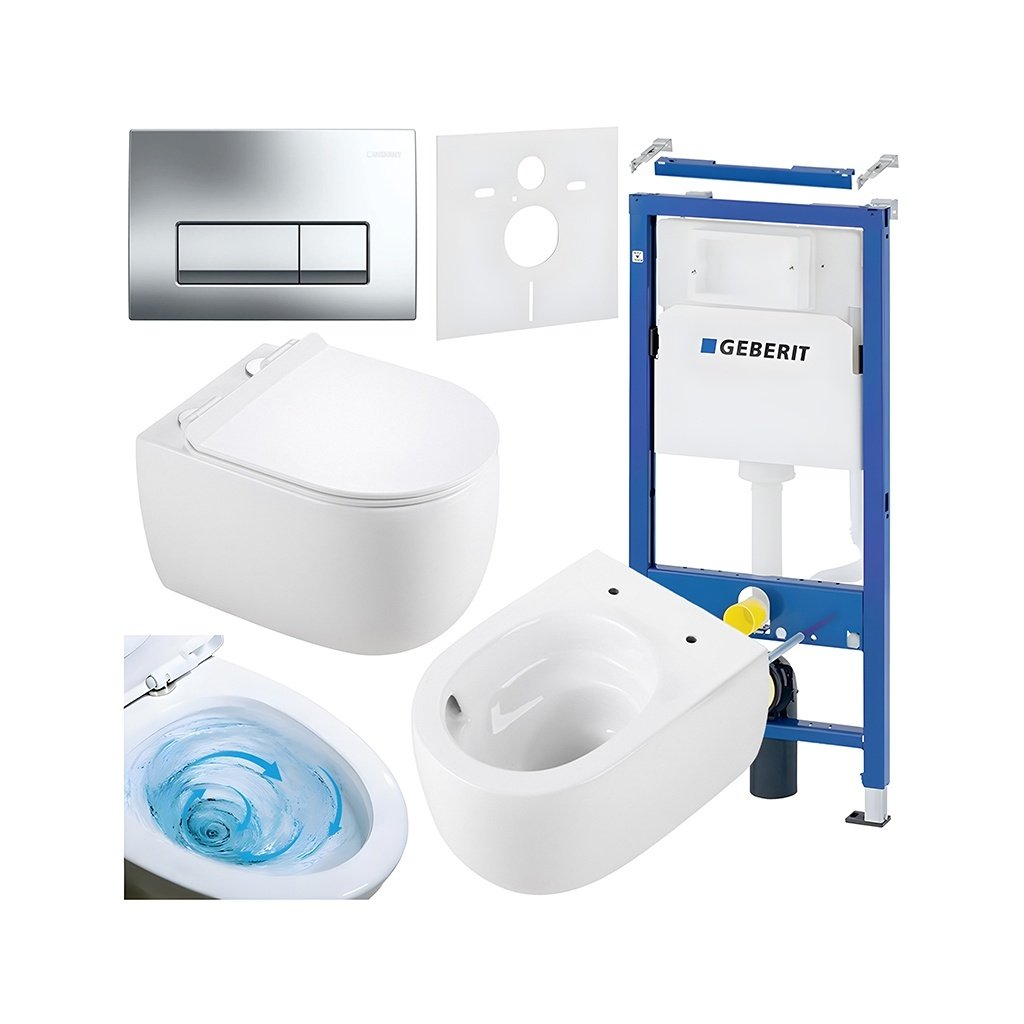 Podomítkový WC set Geberit DuoFix s WC mísou LE-WH-TR-01 je kompletní řešení pro moderní koupelny, které spojuje elegantní design, funkčnost a vysokou odolnost. Tento balíček zahrnuje podomítkový instalační rám, závěsnou bezokrajovou WC mísu, zvukoizolační vložku a dvoudílné ovládací tlačítko. Všechny komponenty jsou součástí balení, takže není třeba nic dokupovat zvlášť.