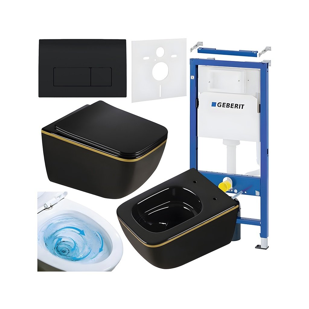 Podomítkový modul Geberit DuoFix s WC mísou YU-BL-GL-TR-03 + ovládací tlačítko Delta 50 černá lesk