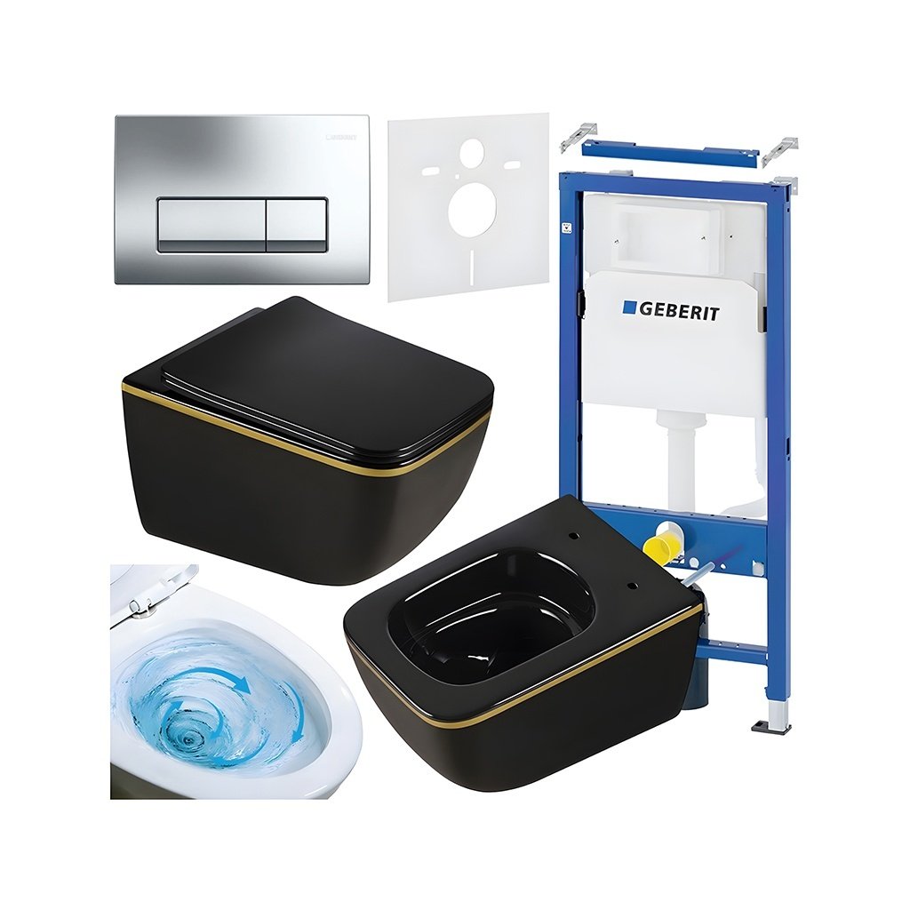 Podomítkový WC set Geberit DuoFix s WC mísou YU-BL-GL-TR-03 je kompletní řešení pro moderní koupelny, které spojuje elegantní design, funkčnost a vysokou odolnost. Tento balíček zahrnuje podomítkový instalační rám, závěsnou bezokrajovou WC mísu, zvukoizolační vložku a dvoudílné ovládací tlačítko. Všechny komponenty jsou součástí balení, takže není třeba nic dokupovat zvlášť.