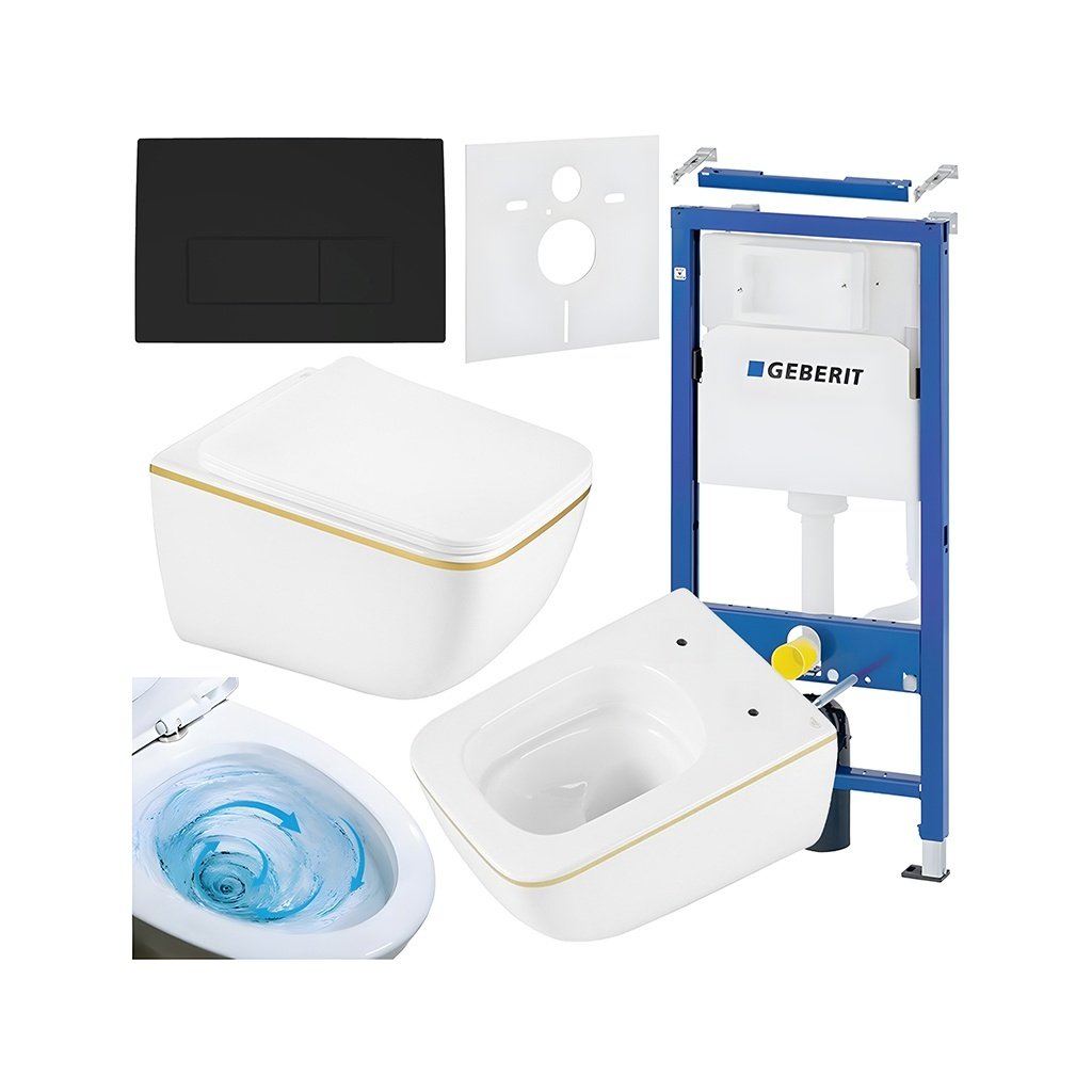 Podomítkový WC set Geberit DuoFix s WC mísou YU-WH-GL-TR-03 je kompletní řešení pro moderní koupelny, které spojuje elegantní design, funkčnost a vysokou odolnost. Tento balíček zahrnuje podomítkový instalační rám, závěsnou bezokrajovou WC mísu, zvukoizolační vložku a dvoudílné ovládací tlačítko. Všechny komponenty jsou součástí balení, takže není třeba nic dokupovat zvlášť.