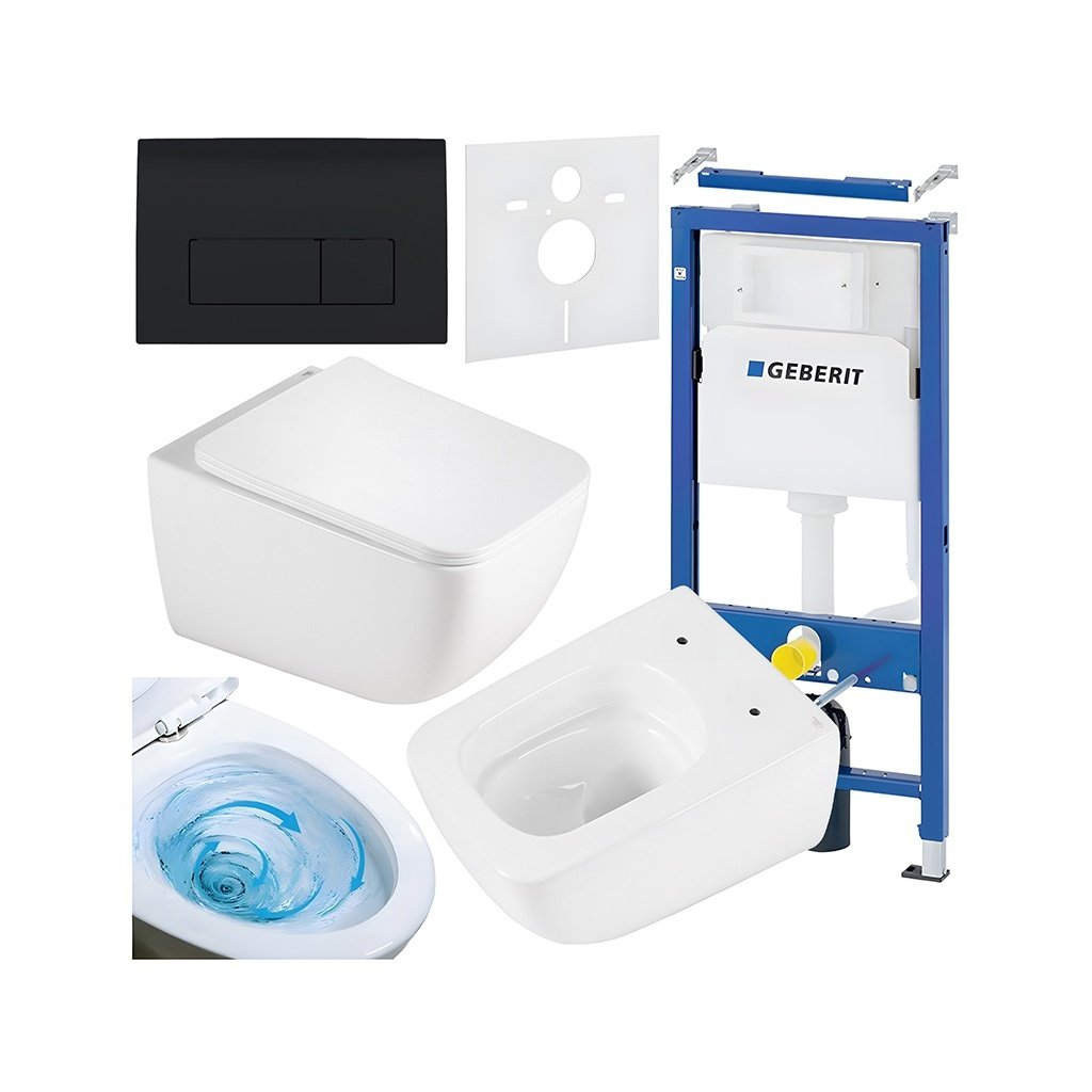 Podomítkový modul Geberit DuoFix s WC mísou YU-WH-TR-03 + ovládací tlačítko Delta 50 černá lesk