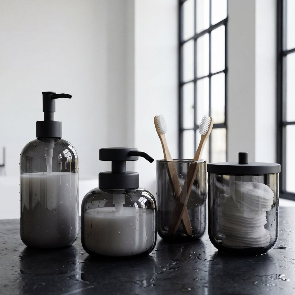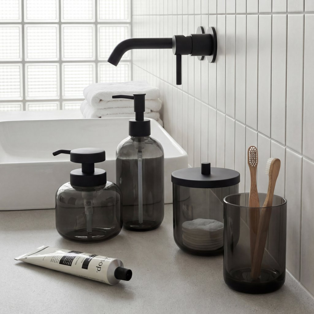 Nová elegantní skleněná série ABU přináší do vaší koupelny moderní a harmonický vzhled. Už nemusíte mít po vaně a umyvadle roztroušené různé plastové barevné lahvičky. Se sérií ABU bude vaše koupelna neustále čistá a uspořádaná. Sklo dodává koupelně eleganci a nadčasovost. Doporučujeme dokoupit podnos na skleněné nádobky AB 70. S touto kolekcí proměníte svou koupelnu v prostor, který je stylový, praktický a vždy dokonale uklizený.Barevné varianty série ABU: