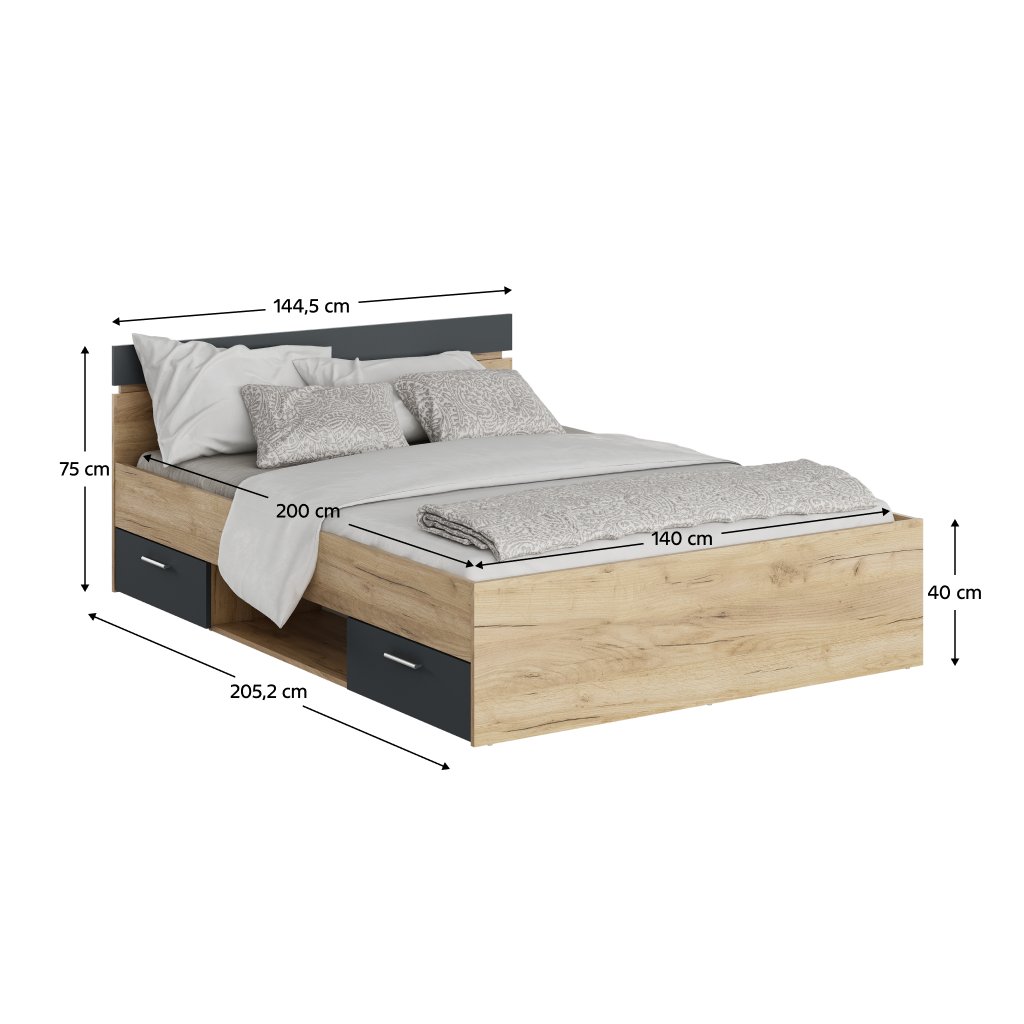 Postel, 140x200, dub artisan/grafit, MICHIGAN NEW