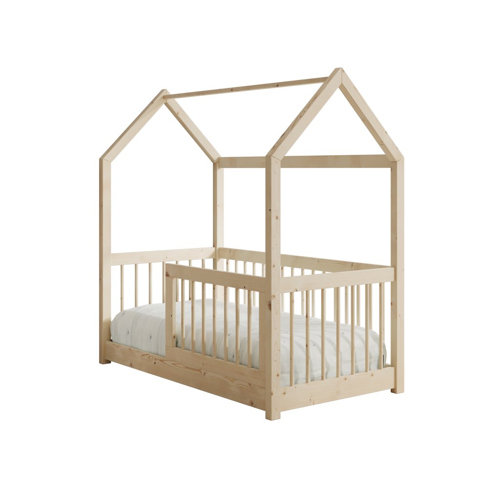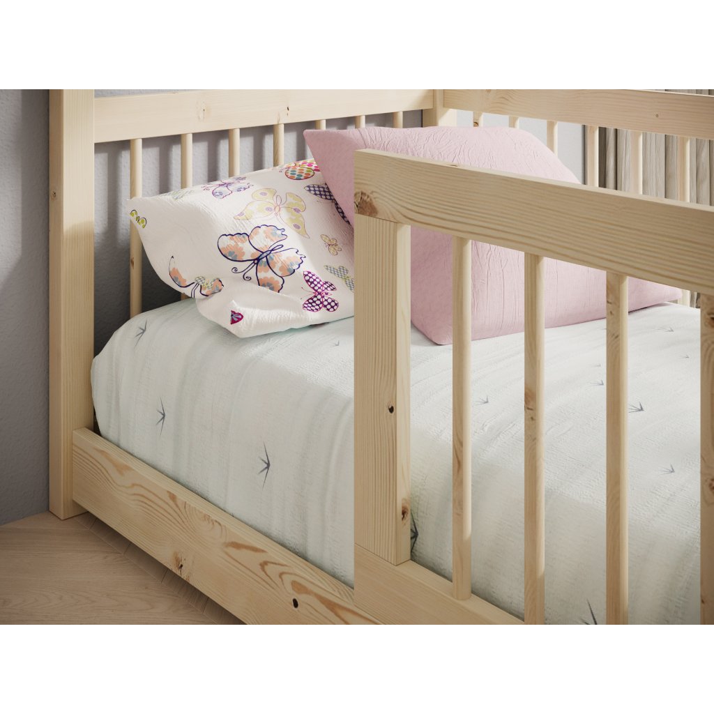 Postel GALICJA, CH-GAL-P-140-M, 140x70 cm se zábradlím a matrací, borovice