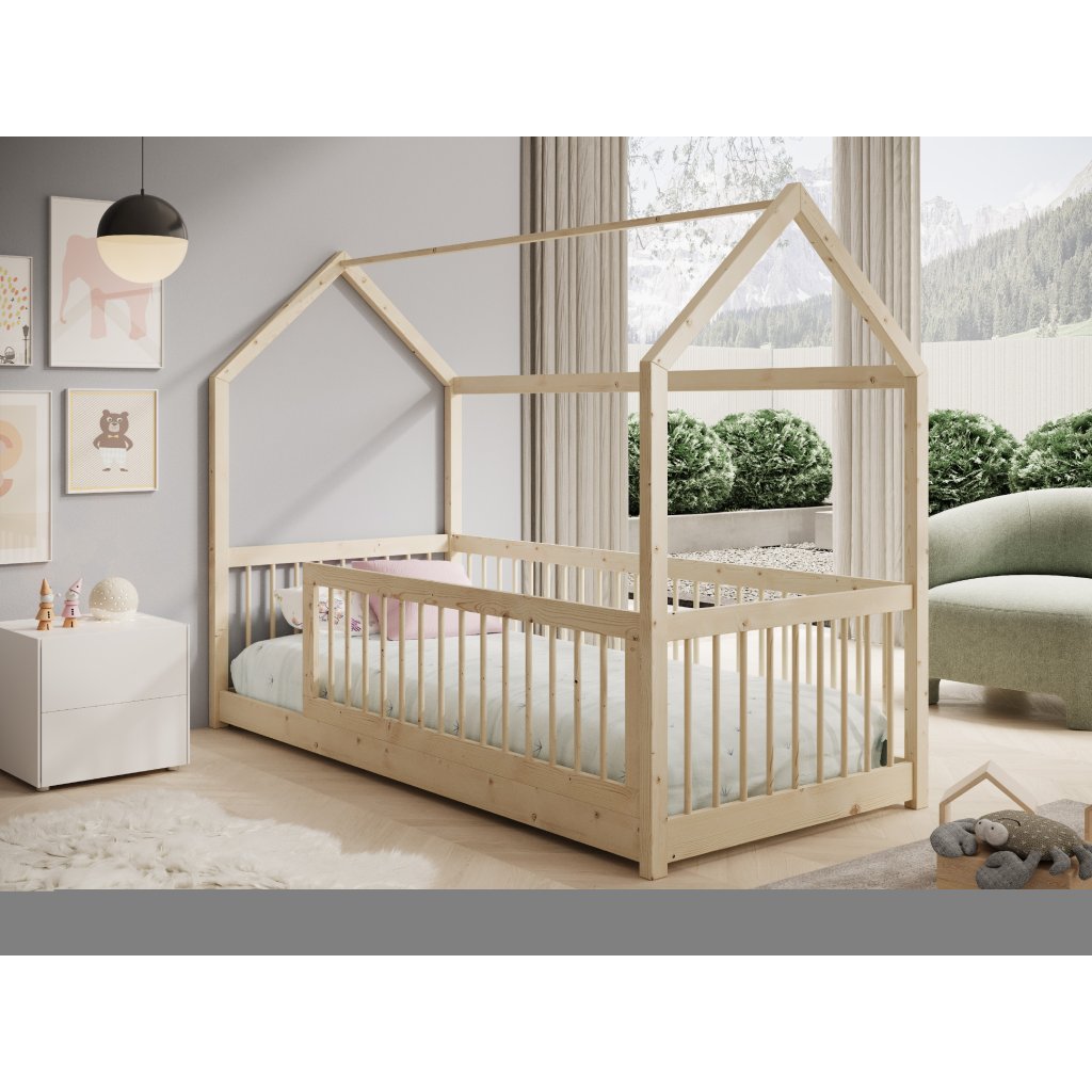 Postel GALICJA, CH-GAL-P-140-M, 140x70 cm se zábradlím a matrací, borovice