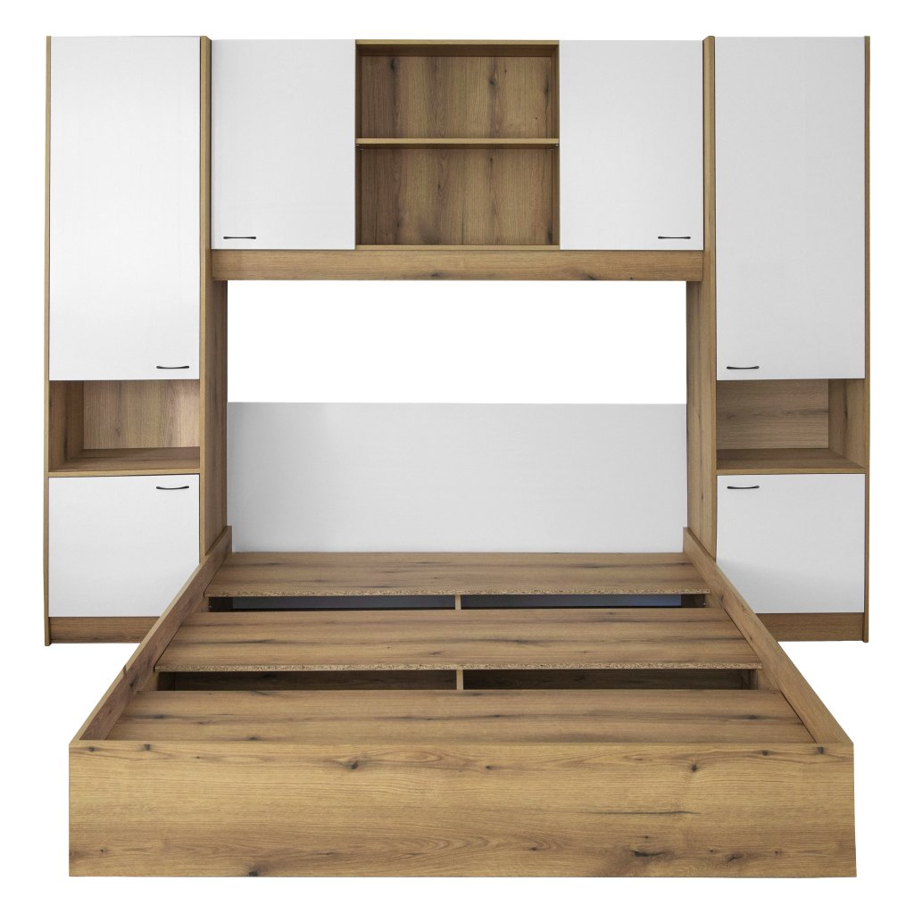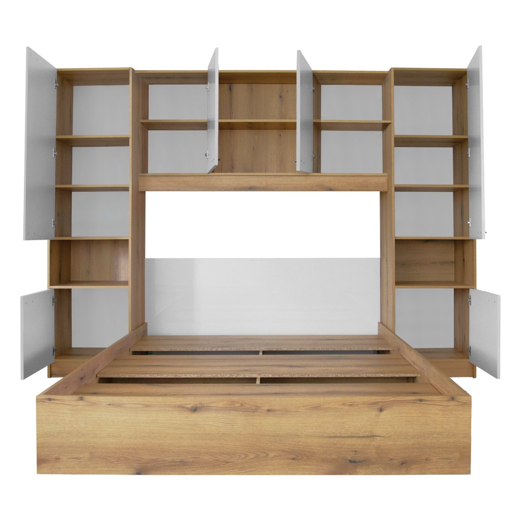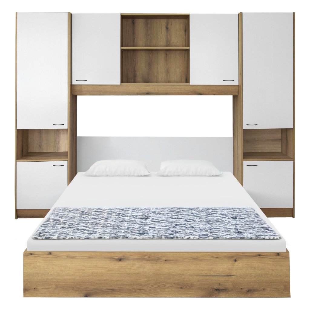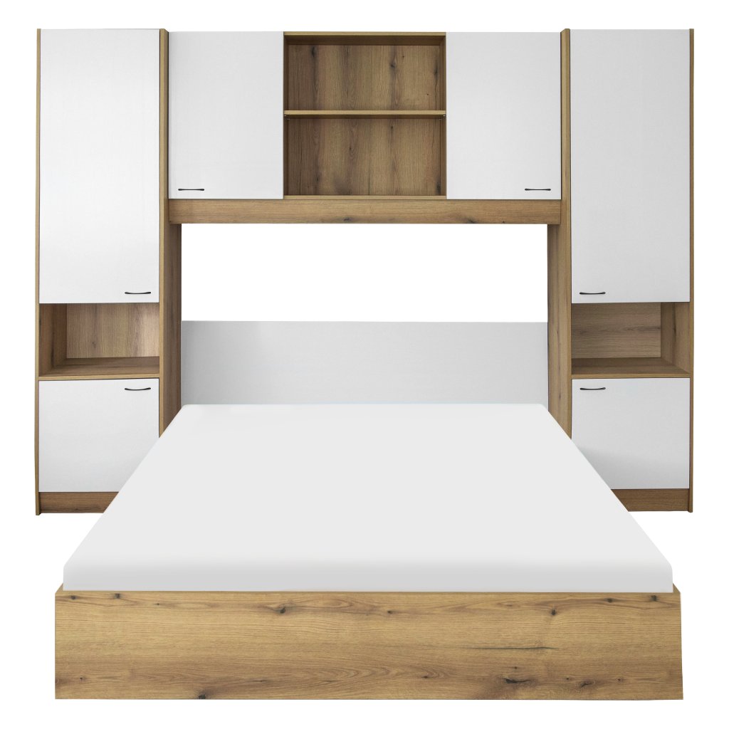 Postel s nástavcem, 160x200, bílá vysoký lesk HG, MILAGA
