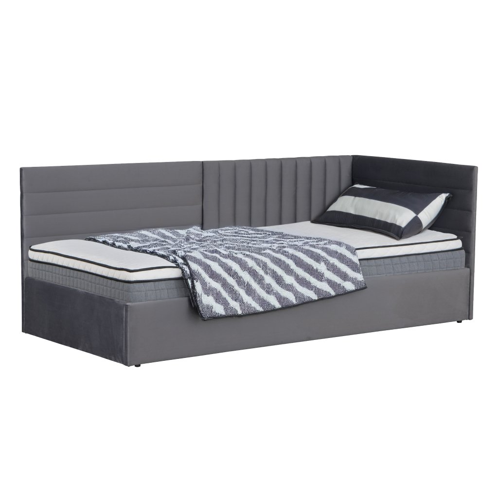 Postel s roštem, 90x200, šedohnědá Taupe Velvet látka, MEVIA