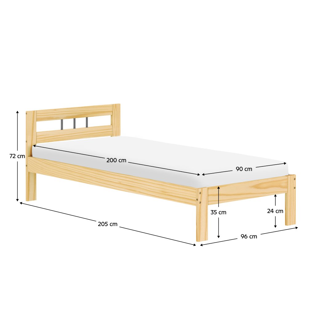 Postel s roštem, přírodní, borové dřevo, 90x200, JONA NEW
