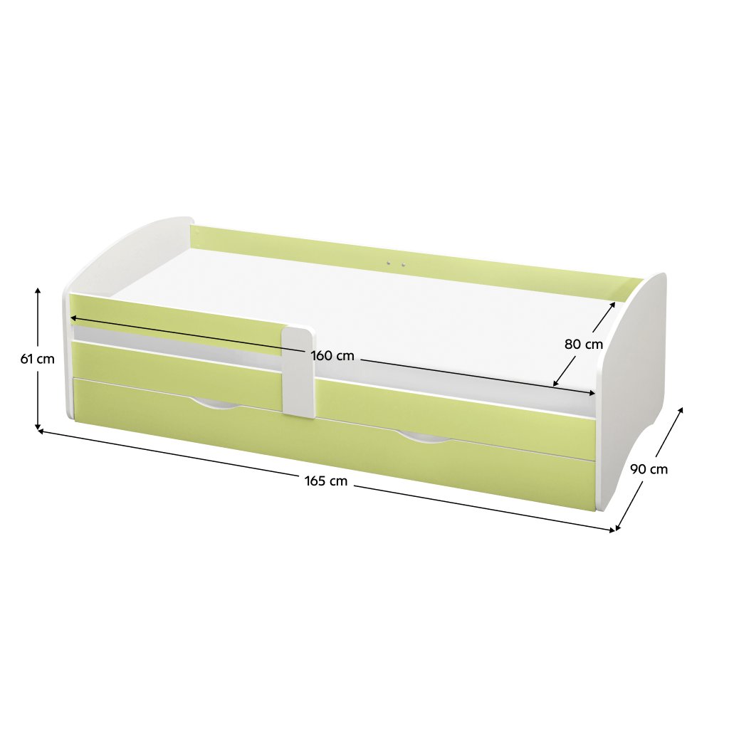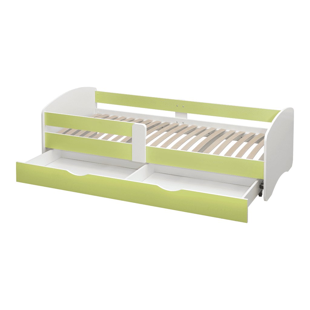 Postel s roštem a úložným prostorem 80x160, bílá/zelená, COCOLINO