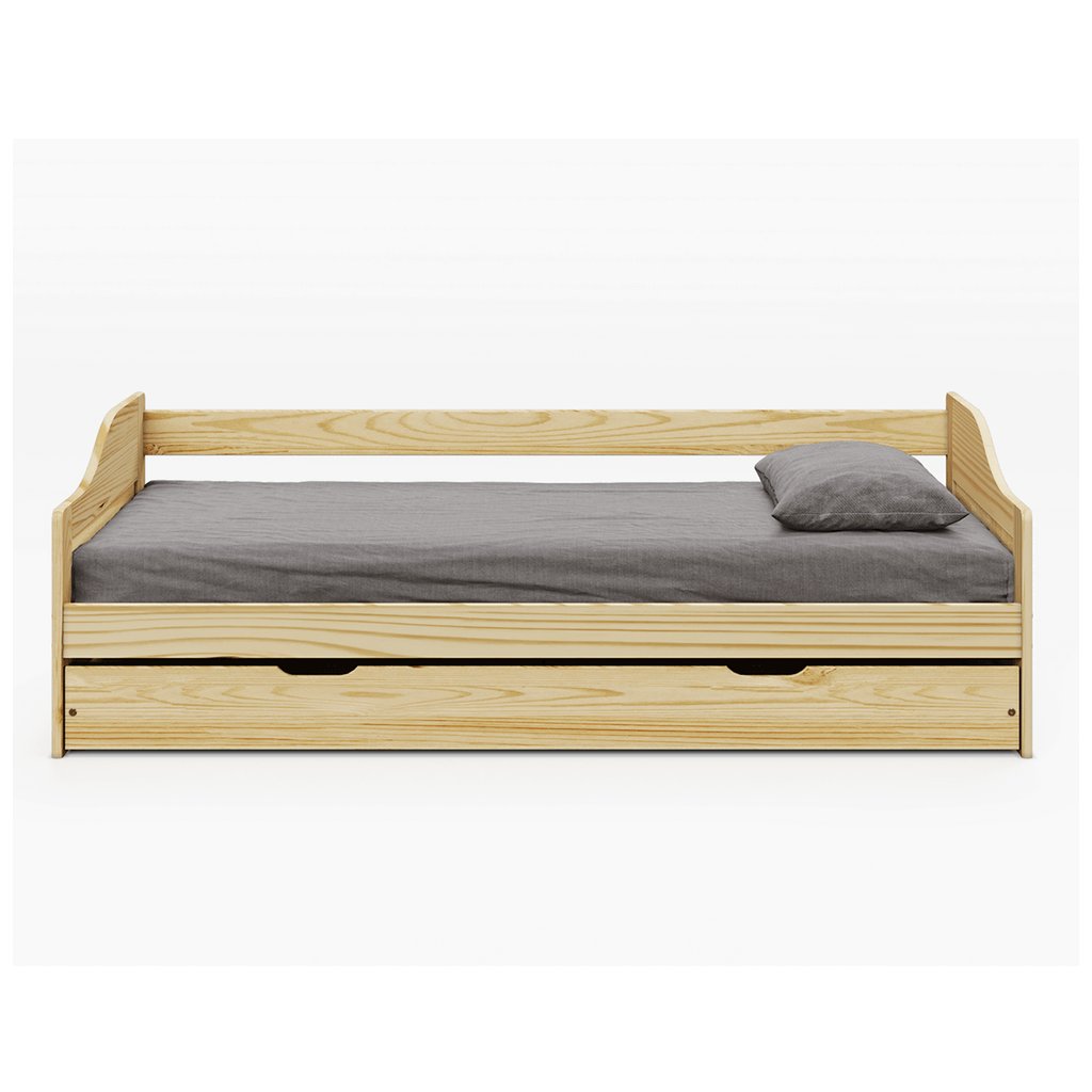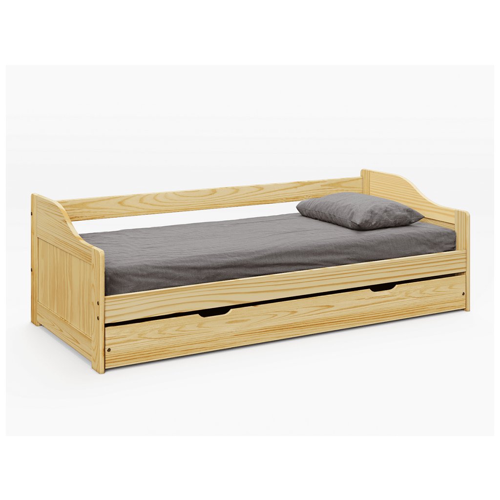 Postel s výsuvnou přistýlkou, přírodní, masiv, 90x200, MARINELLA NEW
