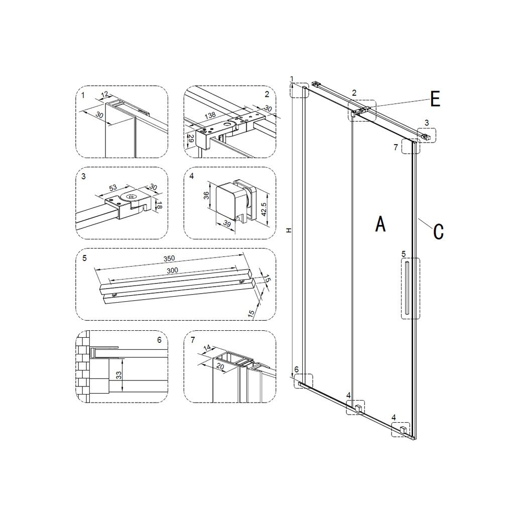 - Rozměry sprchových dveří: