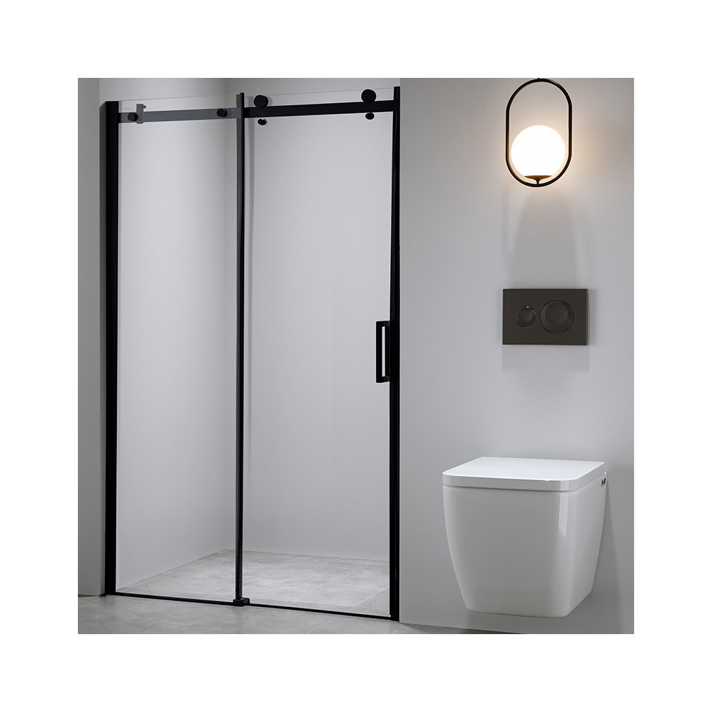 Posuvné sprchové dveře HYD-PD03D 120 černá/transparent pro instalaci do niky - bez vaničky