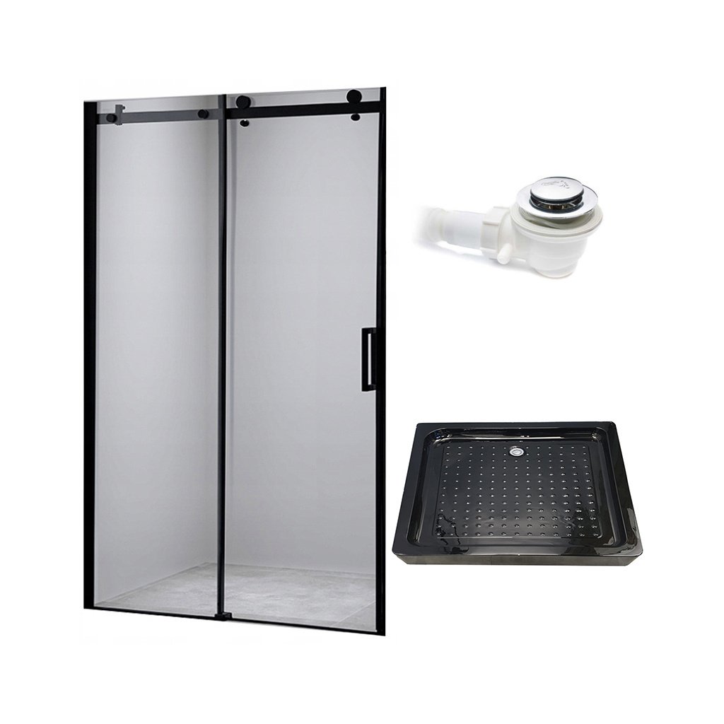 Posuvné sprchové dveře HYD-PD03B 100 černá/transparent pro instalaci do niky + vanička HYD-OSV-SXL03C černá