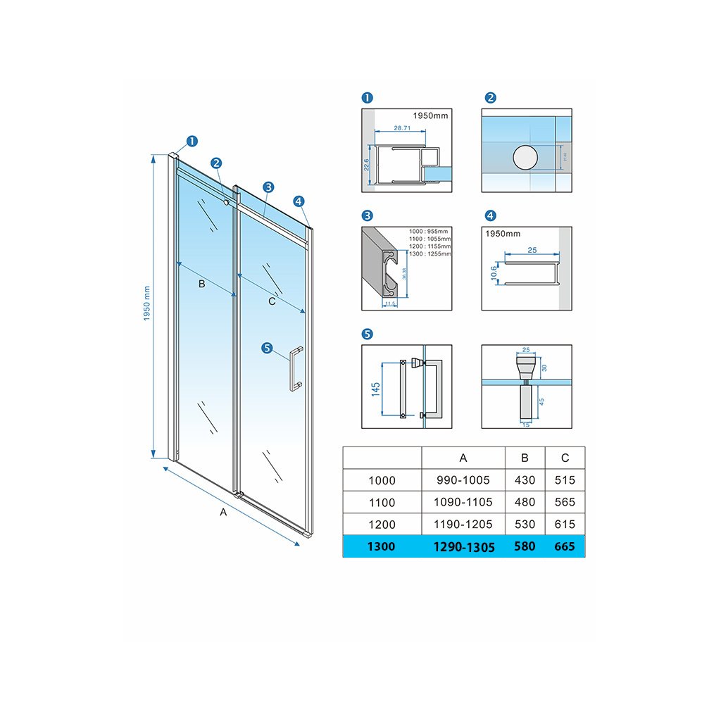 - Typ: Univerzální (pravé/levé) posuvné dveře do sprchy