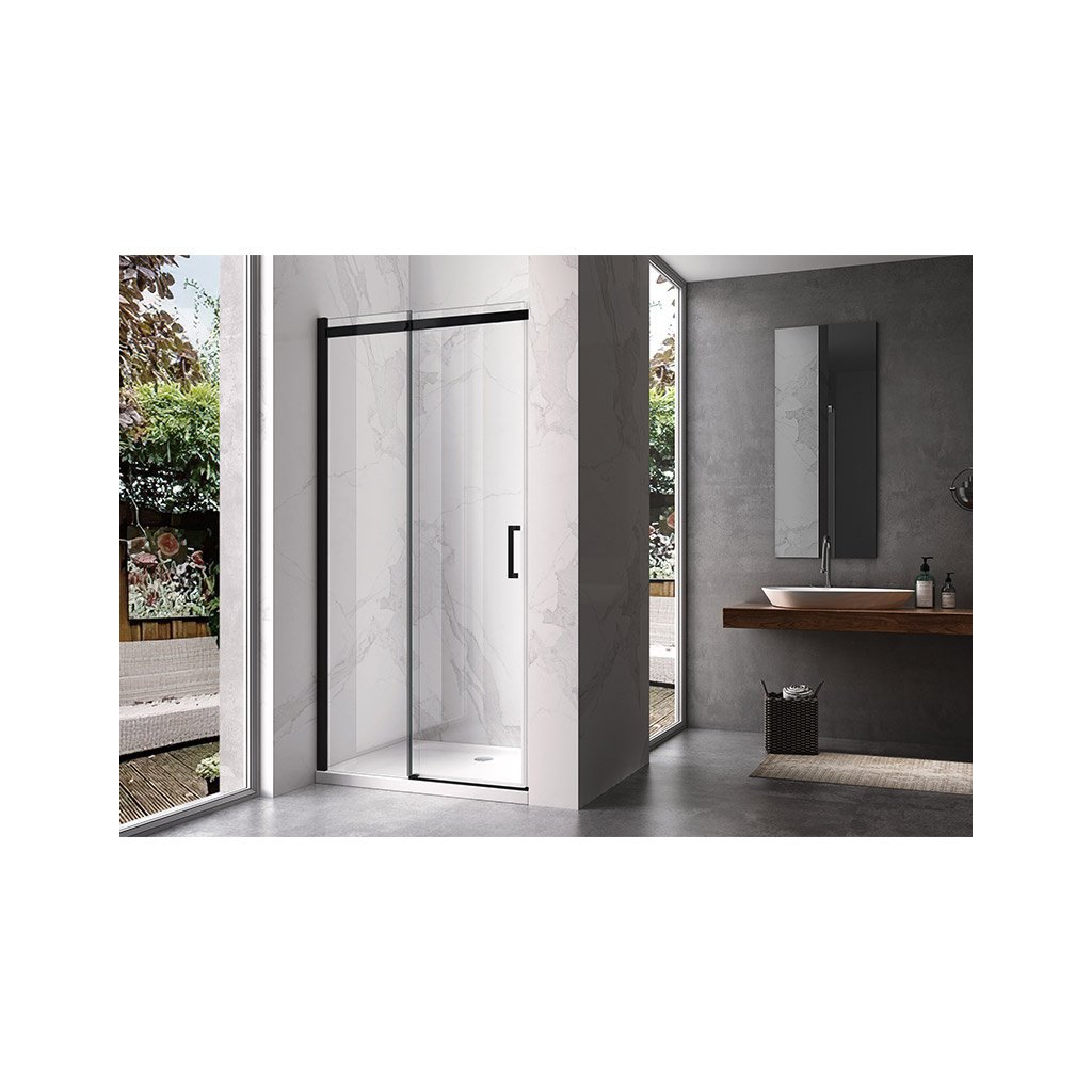 Posuvné sprchové dveře HYD-PD09B 110 černá/transparent pro instalaci do niky - bez vaničky