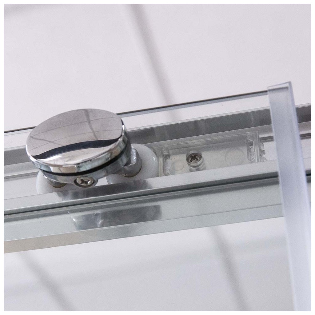 Dveře můžete odklopit velmi jednoduše. Jak můžete vidět na obrázku, na pojezdech se nachází stříbrný "čudlík". Čudlík stlačte směrem dolů a následně dveře už jen odklopíte od lišty. Je nutné oba dva čudlíky na obou pojezdech stlačit najednou, abyste sklo mohli bez problému odklopit. Dveře se však dají vyklopit pouze v dolní části, v horní části zůstávají stále připevněné, což zajišťuje, že na vás dveře nespadnou a nezpůsobí žádný úraz. Po vyčištění pojezdy jen nacvaknete zpět do lišty.