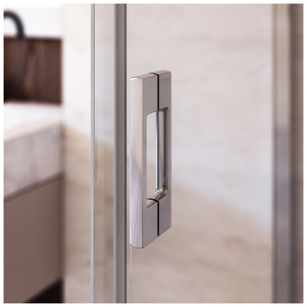 Výplň bezpečnostních skel nabízíme v nadčasovém transparentním (čirém) provedení. Elegantní vzhled sprchových dveří podtrhuje designové madlo.
