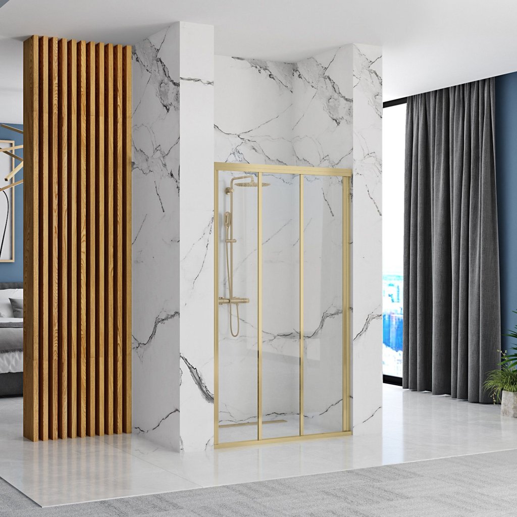 Posuvné sprchové dveře REA ALEX 120 cm pro instalaci do niky, zlatá kartáčovaná/transparent - bez vaničky