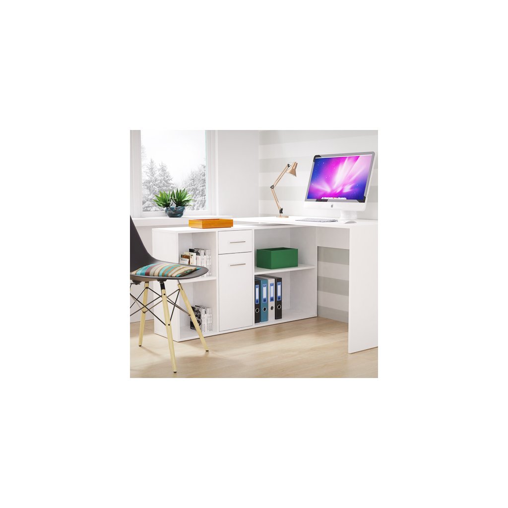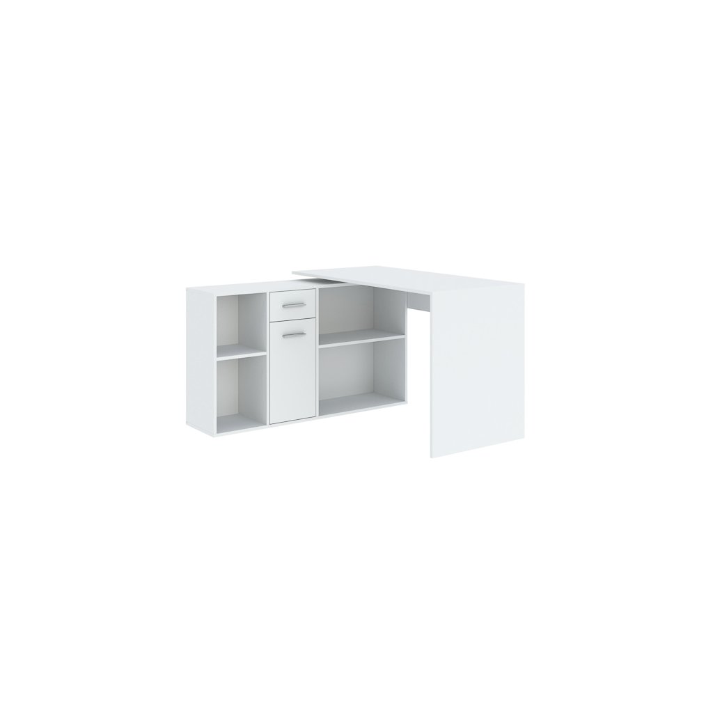 Rohový PC stůl IWO II W-ART, bílá/dub artisan
