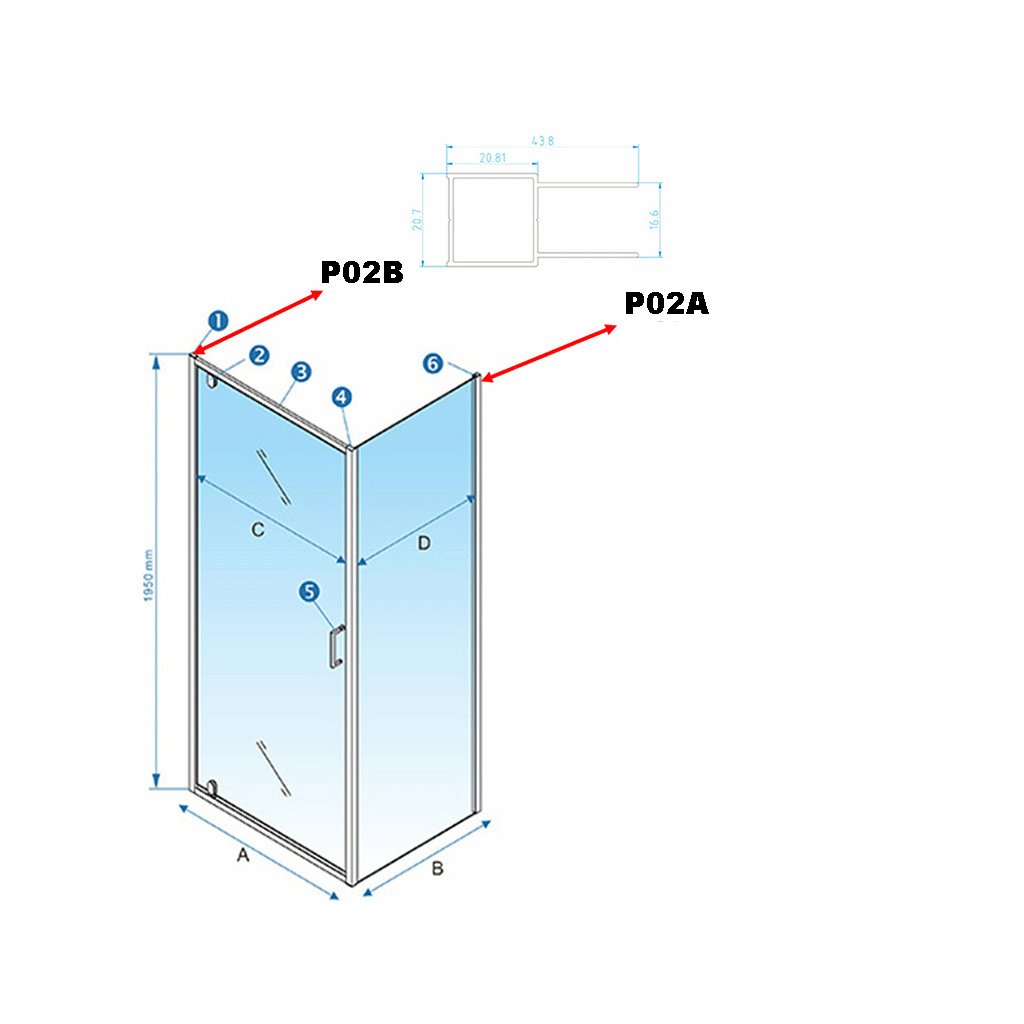 Profil HYD-PP02B slouží pro instalaci na stěnu s dveřmi sprchových koutů: