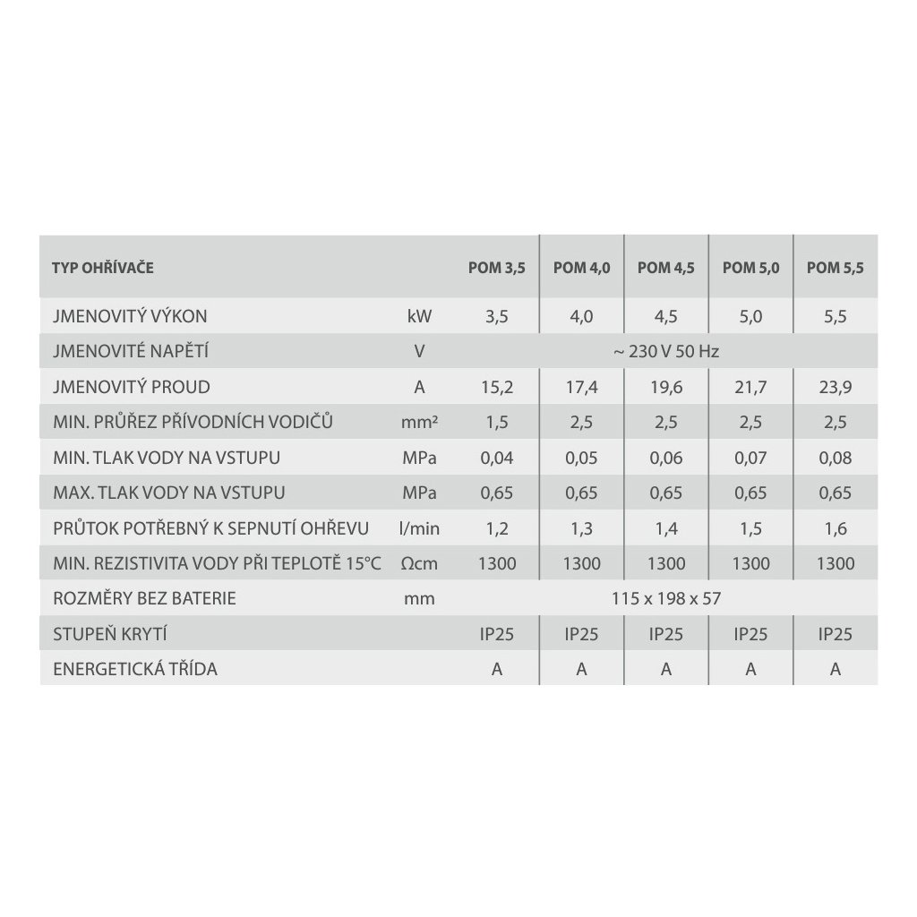 Průtokový ohřívač vody beztlaký s keramickým směšovacím ventilem POM 3.5 / 3.5 kW