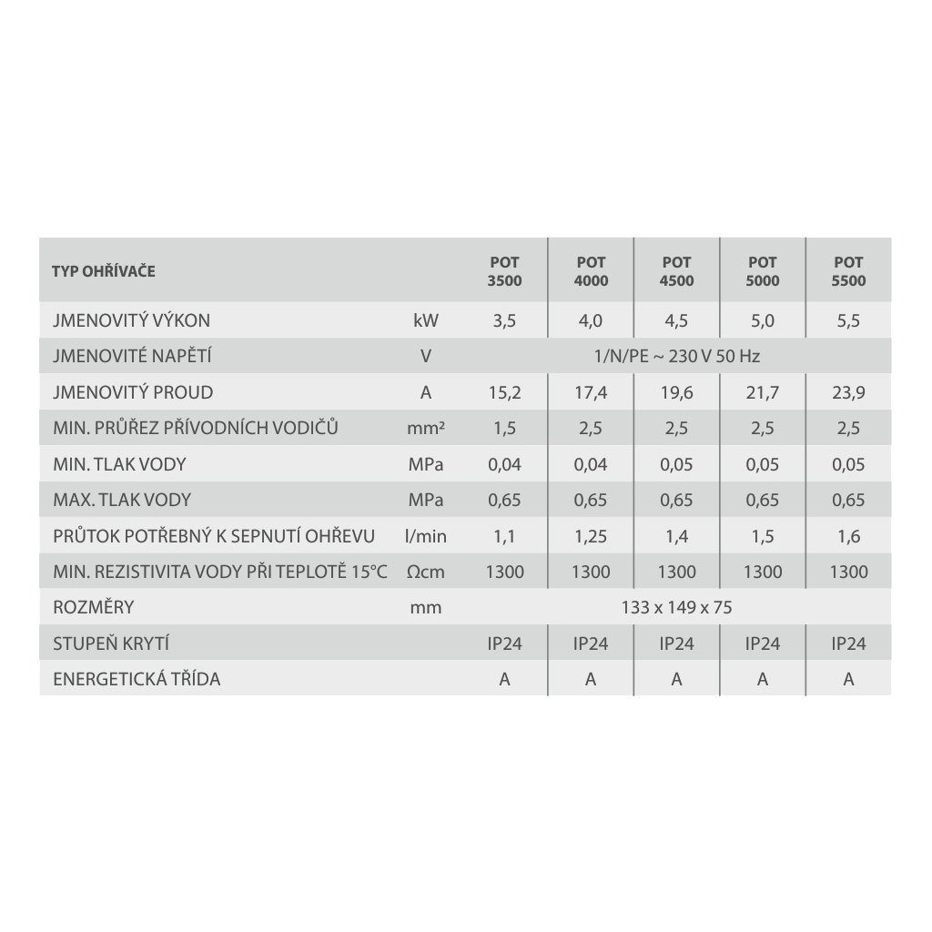 - ohřívače POT s elektronickým spínáním a tepelnou pojistkou se vyznačují nízkým tlakem k sepnutí
