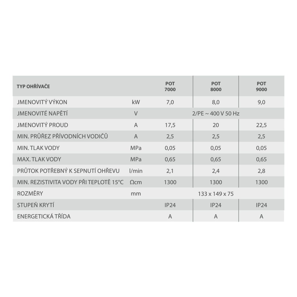- ohřívače POT s elektronickým spínáním a tepelnou pojistkou se vyznačují nízkým tlakem k sepnutí