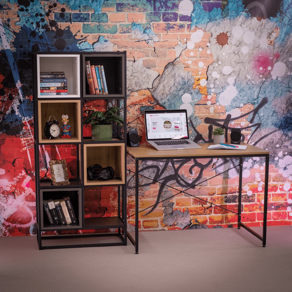 Materiál: kov / MDF laminovanáBarva: černá / dub