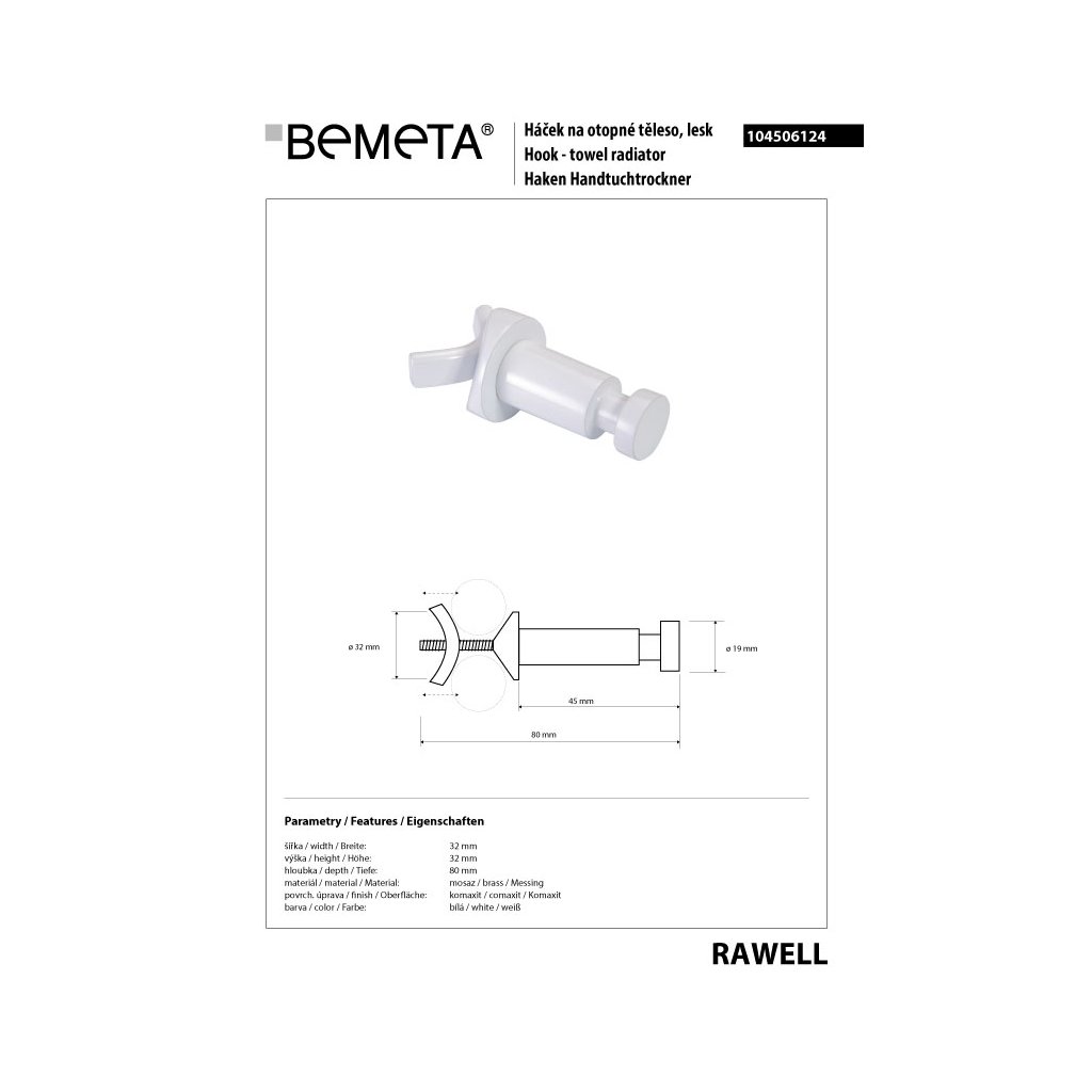 RAWELL: Háček na topné těleso, bílý - 104506124