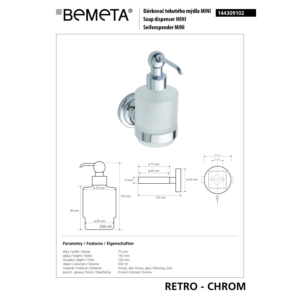 RETRO chrom: Dávkovač mýdla, 200 ml - 144309102