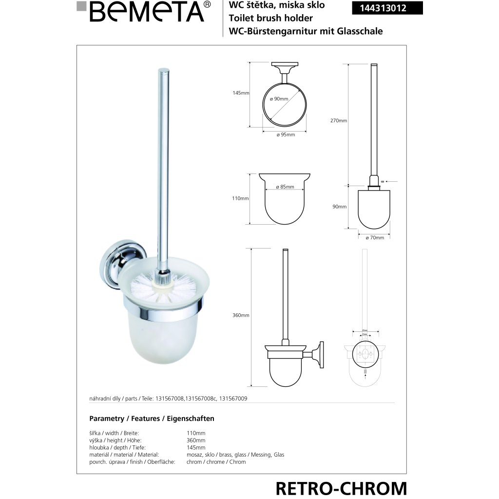 RETRO chrom: WC štětka na pověšení, sklo - 144313012