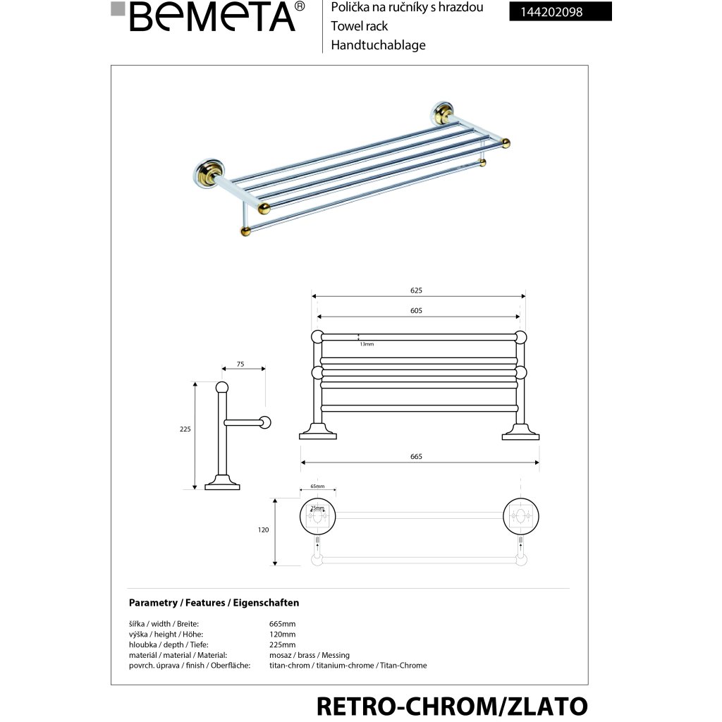 RETRO gold-chrom: Držák ručníků s hrazdou 605 mm - 144202098