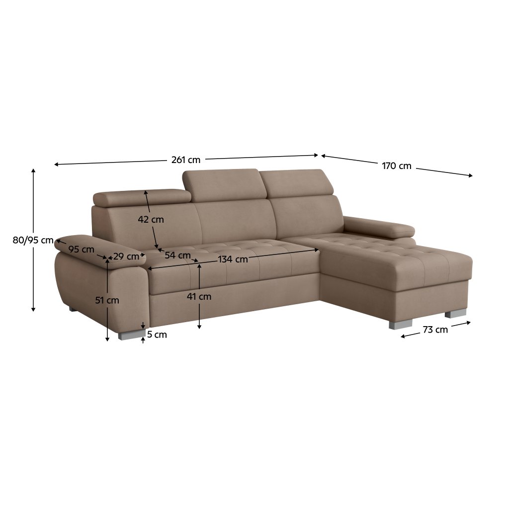 Rozměry (ŠxHxV): 261x170x80/95 cm