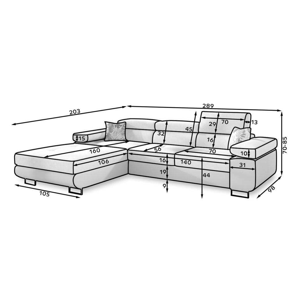Armando je stylová, funkční a především elegantní rohová pohovka pro náročné znalce pohodlí. Vysoký komfort odpočinku umocňují široké područky, dobře tvarované opěradlo a nastavitelné, vysoké opěrky hlavy.Sedák prostorné rohové sedací soupravy o rozměrech 280 x 205 x 90 cm je vyroben z pěny T30, která se stará o maximální pohodlí a pružnost. Rohová sedací souprava ve tvaru L je vybavena funkcí spaní o rozměrech 125 x 198 cm.