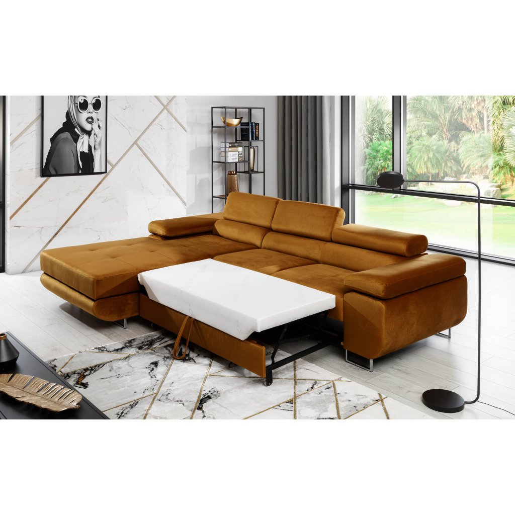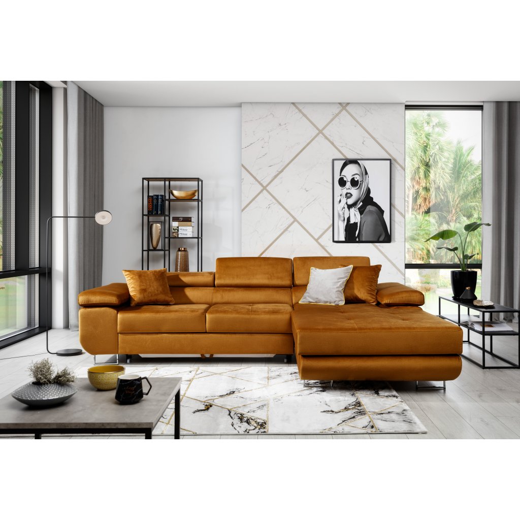 Kromě toho má také velkorysý kontejner na lůžkoviny. Díky jemnému prošívání, elegantnímu prošívání a vysokým chromovaným nožkám se rohová pohovka drží moderního stylu zpracování. Armando je k dispozici v mnoha barevných provedeních. Stojí za to mít takový kus nábytku ve své domácnosti.