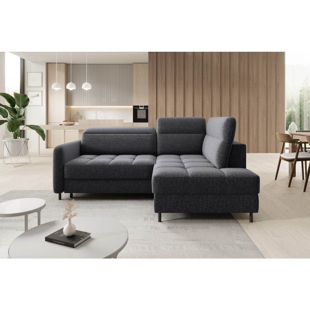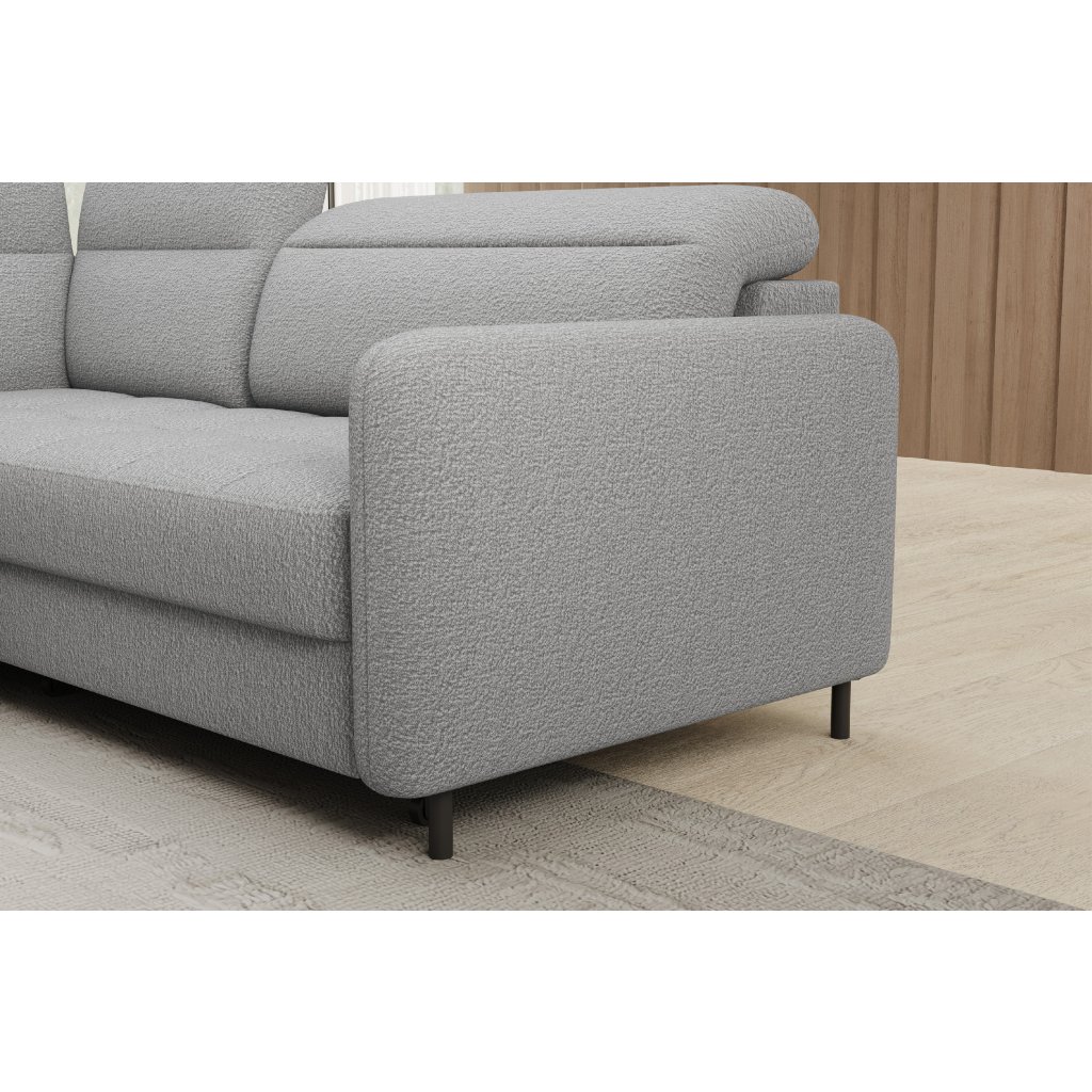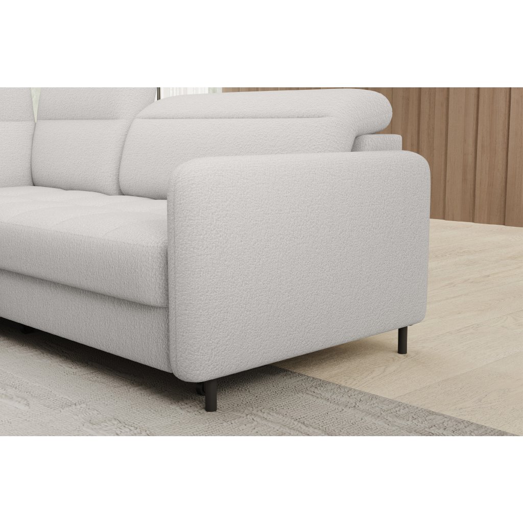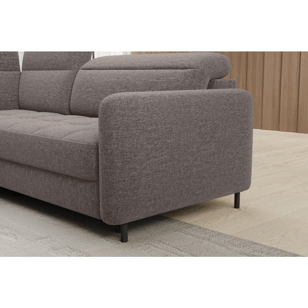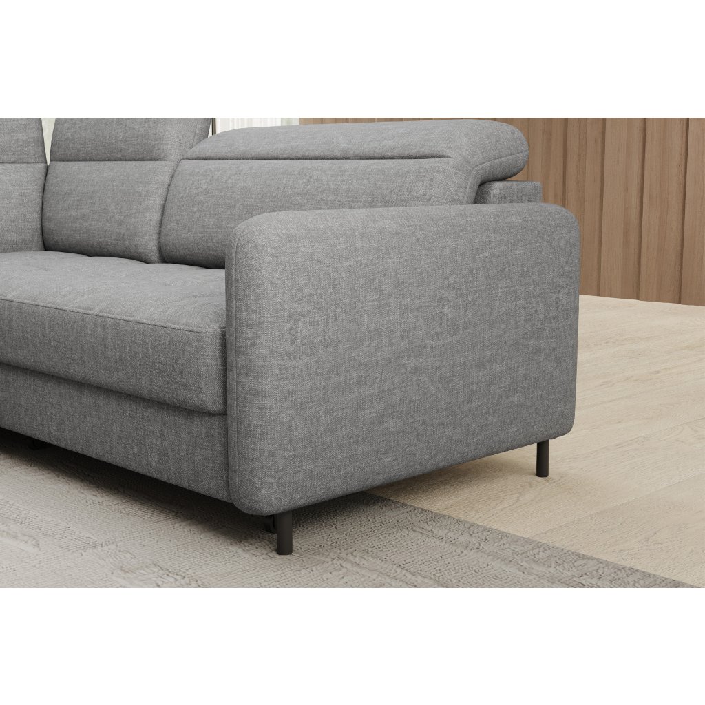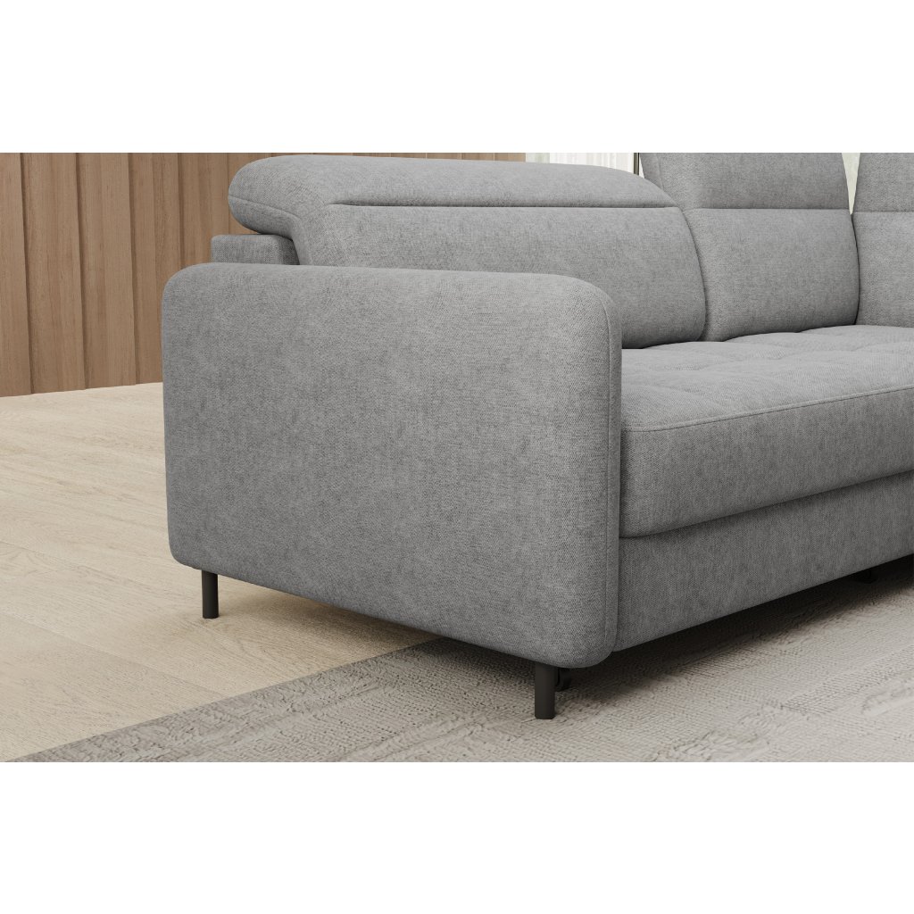 Rohová sedací souprava Barea je elegantní a funkční kus nábytku o rozměrech 208x160x100 cm, který je vybaven pohyblivými opěrkami hlavy a kovovými černými nohami o výšce 10 cm. Její pevná konstrukce z vysoce kvalitních materiálů zajišťuje odolnost, zatímco pečlivě tvarovaný sedák a opěrák zaručují pohodlí a správnou oporu zad. Moderní design rohové sedací soupravy Barea znamená, že dokonale zapadne do minimalistických i sofistikovanějších interiérových úprav. Je k dispozici v různých látkách a barvách, je estetická a funkční, ideální pro každodenní lenošení i vítání hostů.Doplňkové parametry